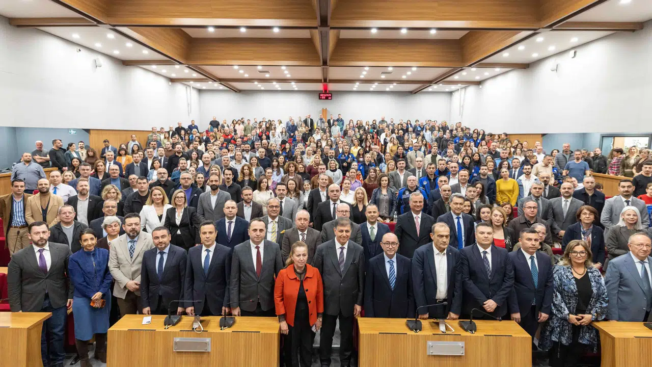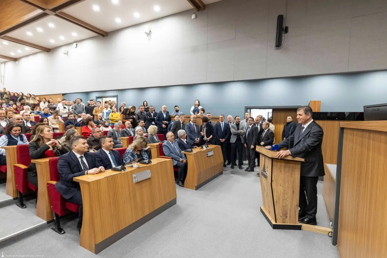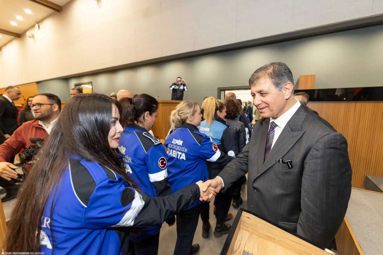 Belediye personeli ve bürokratlarla bayramlaşan İzmir Büyükşehir Belediye Başkanı Dr. Cemil Tugay, “Her biriniz bu kentin vicdanısınız. Bu kurumun gerçek sahipleri sizlersiniz. Benim en büyük güvencem, İzmir’in her köşesinde onurla görev yapan siz değerli yol arkadaşlarımsınız. Bizler yalnızca sorun çözen insanlar değiliz; aynı zamanda İzmir’in hayallerini gerçeğe dönüştüren, bunu birlikte inşa eden büyük bir aileyiz” dedi.