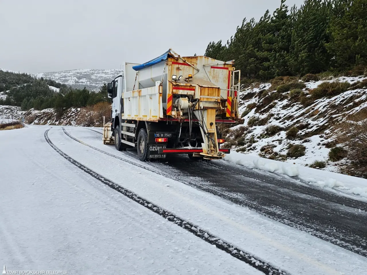 İzmir’in yüksek kesimlerde 7 gün 24 saat teyakkuzda olan İzmir Büyükşehir Belediyesi Yol Yapım, Bakım ve Onarım Dairesi Başkanlığı ekipleri, kar yağışı ve buzlanmanın olduğu noktalarda ulaşımın aksamaması için önlemler alarak olumsuzlukların önüne geçti. İzmir’in köy yolları başta olmak üzere sıcaklıkların eksi derecelere düştüğü noktalarda tuzlama çalışması yapan ekipler, yüksek kesimlerde oluşan kar birikintilerine ise kar küreme araçlarıyla müdahale etti.