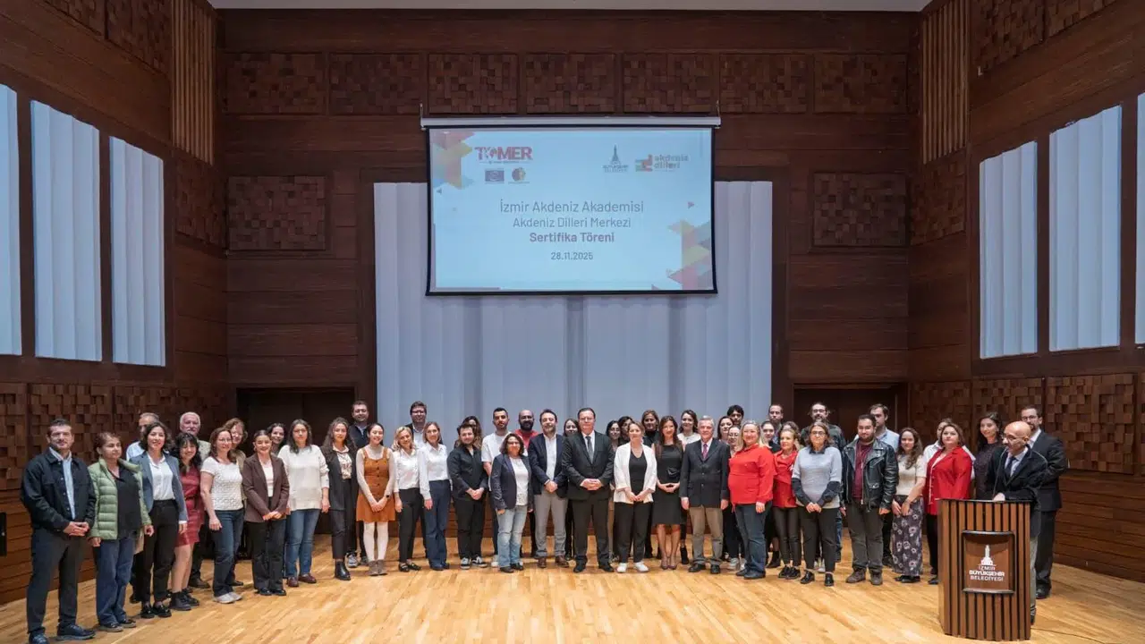 İzmir Büyükşehir Belediyesi bağlı İzmir Akdeniz Akademisi bünyesindeki Akdeniz Dilleri Merkezi’nin, Ankara Üniversitesi TÖMER iş birliğiyle yürüttüğü yabancı dil programlarının sertifika töreni, Ahmed Adnan Saygun Sanat Merkezi’nde düzenlendi.