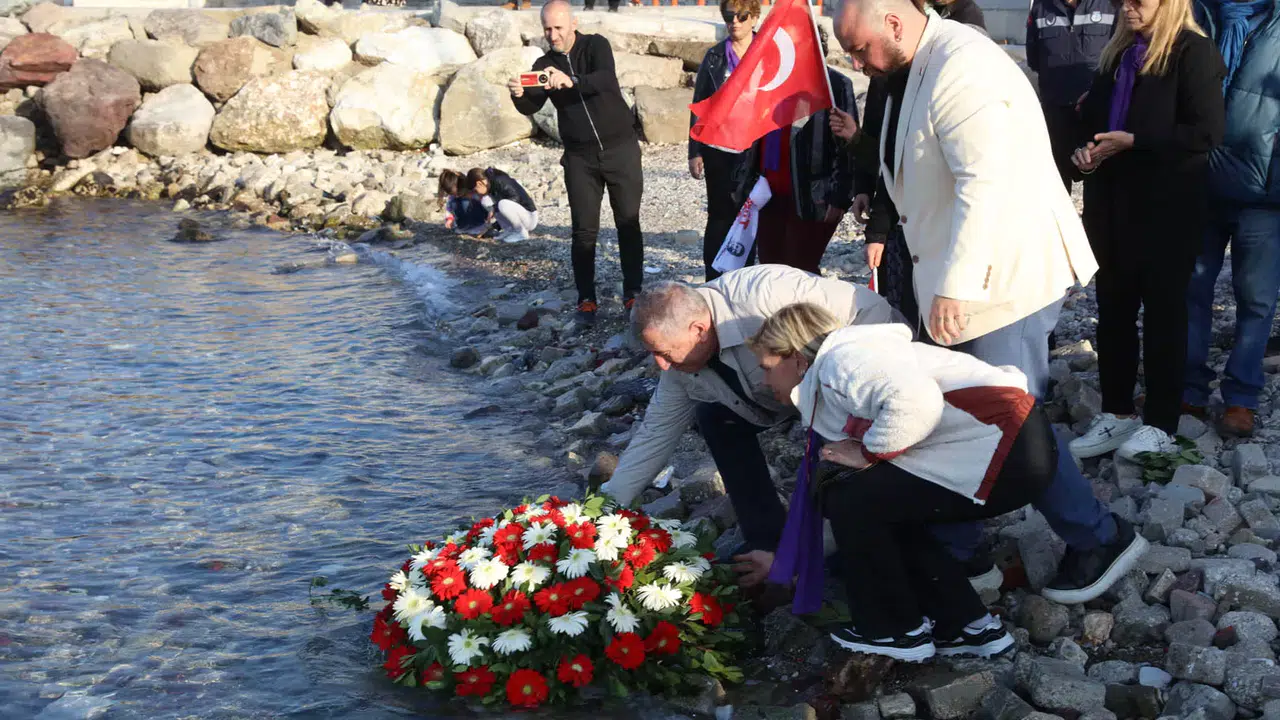 Eylemin sonunda, kadın cinayetlerinde hayatını kaybeden kadınların isimleri, toplanma alanında yerlere tebeşirle yazılarak, Sonrasında kadınlar bu isimlere su dökerek unutmamak ve bu mücadeleyi canlı tutmak için bir anma ritüeli yaptı. Son olarak hayatını kaybeden tüm kadınların anısına denize çelenk bırakıldı.