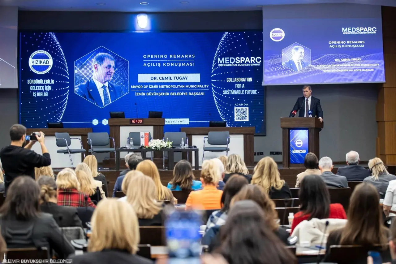 İzmir Büyükşehir Belediye Başkanı Dr. Cemil Tugay, İzmir İş Kadınları Derneği (İZİKAD) tarafından bu yıl ikincisi düzenlenen MEDSPARC Uluslararası İş Zirvesi’nin açılışına katıldı. Bu yıl “Sürdürülebilir Gelecek için İşbirliği: Üçüz Dönüşüm” temasıyla organize edilen zirve, İzmir Ticaret Odası Meclis Salonu’nda düzenlendi. Toplantıya Başkan Dr. Cemil Tugay’ın yanı sıra İzmir Valisi Dr. Süleyman Elban, Karabağlar Belediye Başkanı Helil İnay Kınay, İZİKAD Yönetim Kurulu Başkanı Özden Erten, Batı Anadolu Sanayici ve İş İnsanları Dernekleri Federasyonu (BASİFED) Yönetim Kurulu Başkanı Semiha Güneş, Akdeniz Ticaret ve Sanayi Odaları Birliği (ASCAME) Yönetim Kurulu Başkanı Ahmed M. El Wakil, kamu kurumlarının, meslek odalarının, sivil toplum kuruluşlarının ve İzmir iş dünyasının temsilcileri katıldı. Zirve kapsamında düzenlenen panellerde yeşil, dijital ve toplumsal dönüşümün kesişimi ele alındı. Uzmanlar yeşil teknolojiler ve çevresel açıdan sorumlu dijital çözümlerle iş birliği temelli inovasyonun sürdürülebilir ilerlemeyi nasıl hızlandırabileceğini tartıştı.