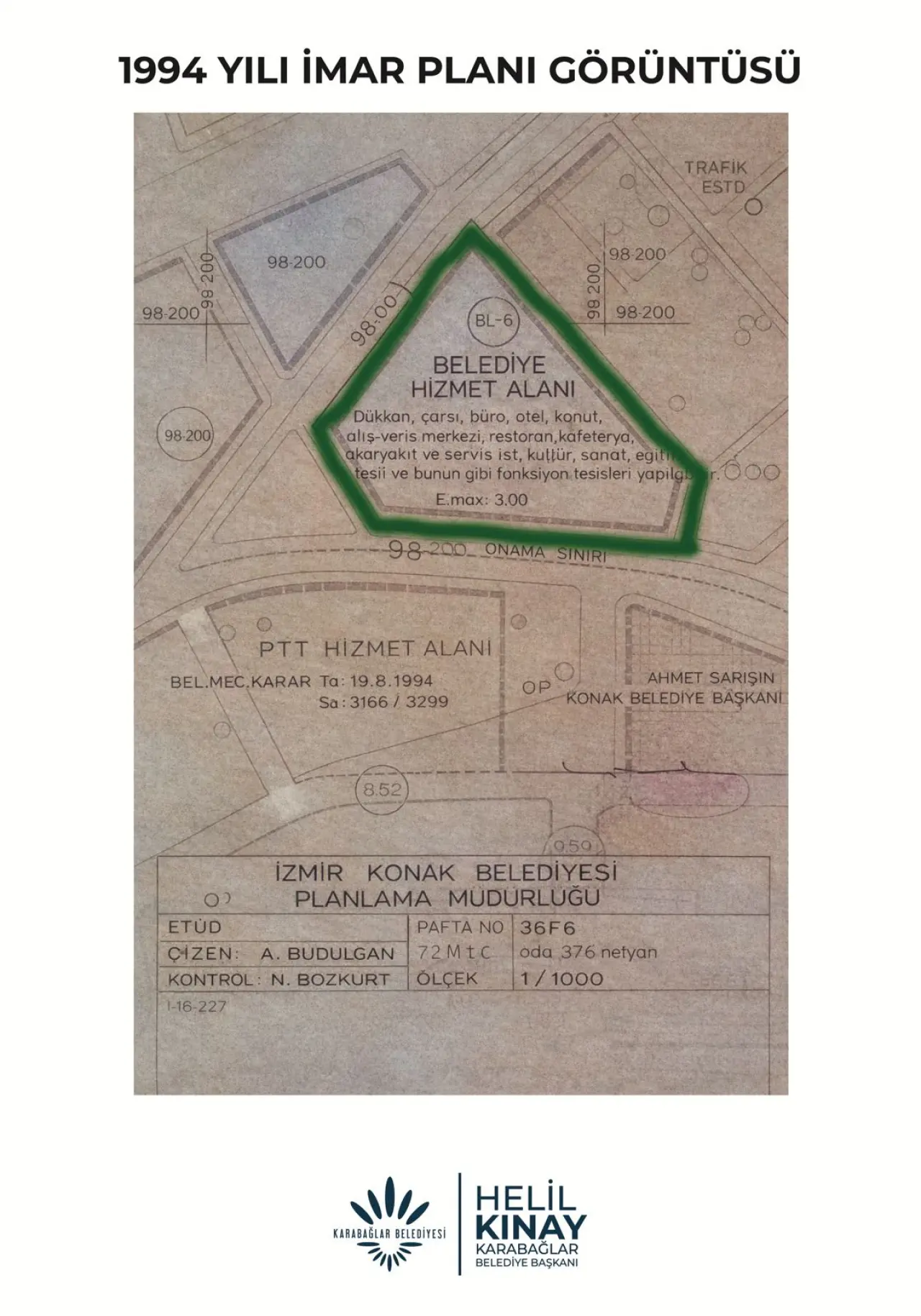 · 09.06.1994 onay tarihli 1/1000 ölçekli Hatay- Üçkuyular Bayram Yeri Uygulama İmar Planına Konak Belediye Başkanlığı tarafından “… akaryakıt ve servis istasyonu tesisleri yapılabilir” plan notu eklenmiş ve İzBB tarafından onaylanmıştır. Buna istinaden tesise yapı ruhsatı izin belgesi ve yapı kullanma izin belgesi verilmiştir.
