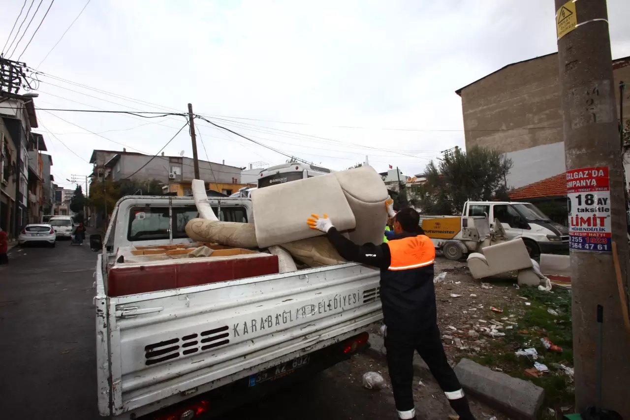 Belediye ekipleri Karabağlar’da günde ortalama 12-14 kamyonet dolusu mobilya atığı topluyor. Bu yoğunluğa rağmen hizmetin aksamadan devam edebilmesi için planlı çalışmanın ve vatandaş işbirliğinin önemi vurgulandı.