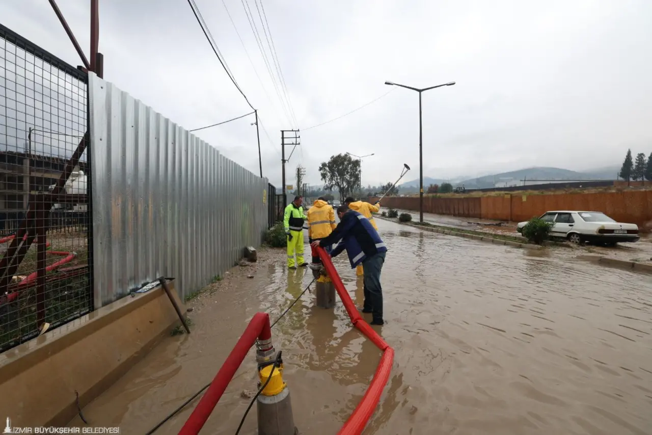 Dün akşam saatlerinden bu yana İzmir genelinde devam eden yağışlar özellikle Karaburun, Foça, Çeşme ve Dikili'de etkili oldu. Karaburun'da son 24 saatte metrekareye 165, Foça'da 137, Çeşme'de 131, Dikili'de 110 kg yağış düştü. Deniz seviyesinin de yükselmesiyle birlikte su baskınları yaşandı. İZSU Genel Müdürlüğü ve itfaiye ekipleri ihbarlara müdahale etmek için bölgeye sevk edilen takviye ekiplerle birlikte seferber oldu. İzmir Büyükşehir Belediyesi bin 200 personel 342 araç, 200 iş makinesi ve pompa ile su taşkını yaşanan bölgelerde yaşamı normale döndürmek için kesintisiz çalışıyor. Çeşme, Karaburun, Foça gibi kıyı bölgelerin yanı sıra Alsancak, Bostanlı, Konak ve Karşıyaka ilçelerindeki kritik noktalarda ve dere altgeçitlerinde ekipler takip ve müdahale çalışmalarını sürdürüyor. Dere temizlik çalışmalarının özellikle Çeşme, Karaburun ve Seferihisar'da büyük taşkın sorunlarını önlediği bildirildi.