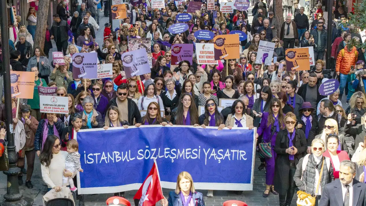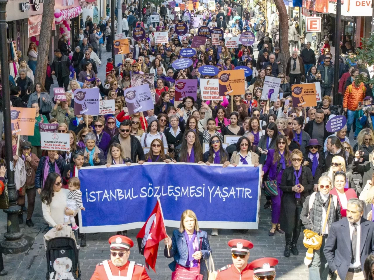 Ardından başta kadınlar olmak üzere yüzlerce vatandaş, Karşıyaka Belediyesi ana hizmet binası önünde bir araya geldi. Sembolik ‘8 Mart Ağacı’ oluşturularak, kadın mücadelesinde öncü isimlerin sözlerinin yazılı olduğu mor kurdeleler dallara bağlandı. Daha sonra Karşıyaka Kent Konseyi öncülüğünde; Karşıyaka Belediyesi Kadın ve Aile Hizmetleri Müdürlüğü, kadın dernekleri ve sivil toplum kuruluşları tarafından düzenlenen Kadın Korteji’ne geçildi. Belediye Bandosu’nun çaldığı marşlar eşliğinde, ellerinde pankartlarla Çarşı içerisinden geçen katılımcılar, omuz omuza Hergele Meydanı’na yürüdü.
