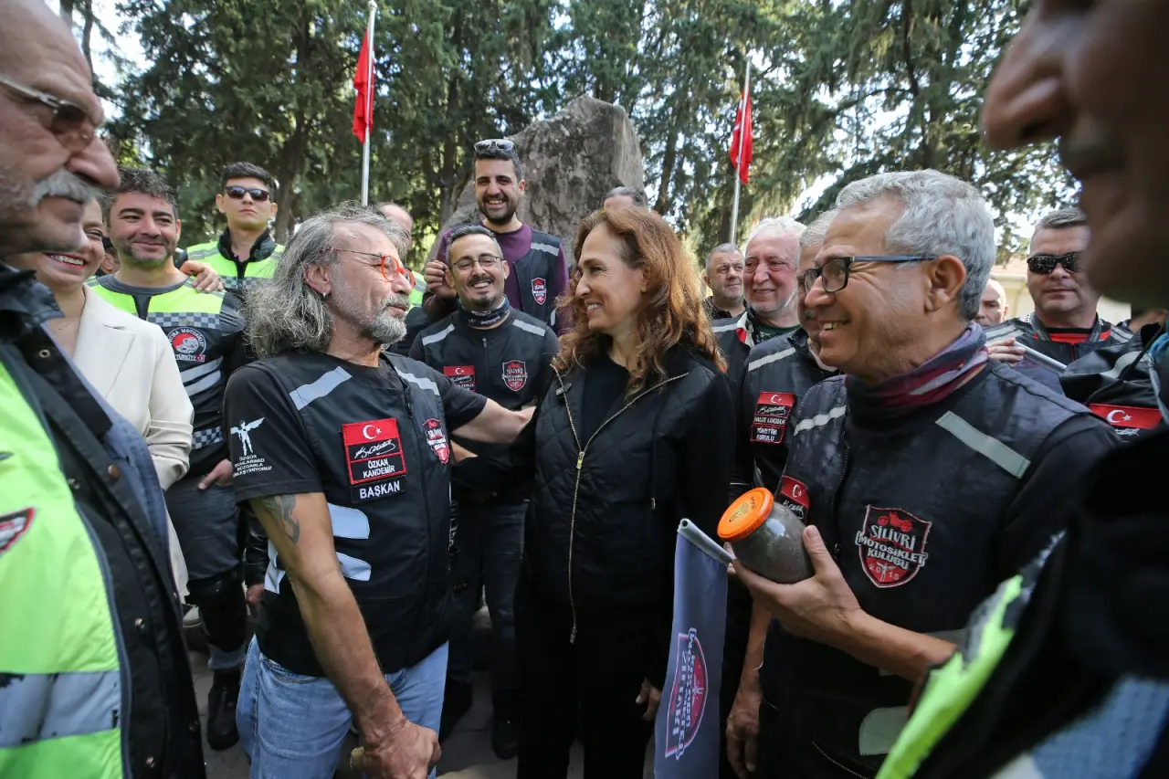 Büyük Önder Atatürk’ü anmak için Karşıyaka’ya gelen Silivri Motosiklet Grubu, 10 Kasım etkinlikleri kapsamında Zübeyde Hanım Anıt Mezarı’nda anlamlı bir tören gerçekleştirdi. Grup üyeleri, Çanakkale Şehitliği’nden, Yunanistan Mayadağ’dan ve Langaza’dan (Uğurlu Köyü) getirdikleri toprakları Karşıyaka Belediye Başkanı Yıldız Ünsal ile birlikte kabre sundu. Başkan Ünsal, “Atamızı ve mücadele arkadaşlarını bir kez daha saygıyla anıyoruz, bize bıraktıkları mirasın yılmaz bekçileriyiz” dedi.