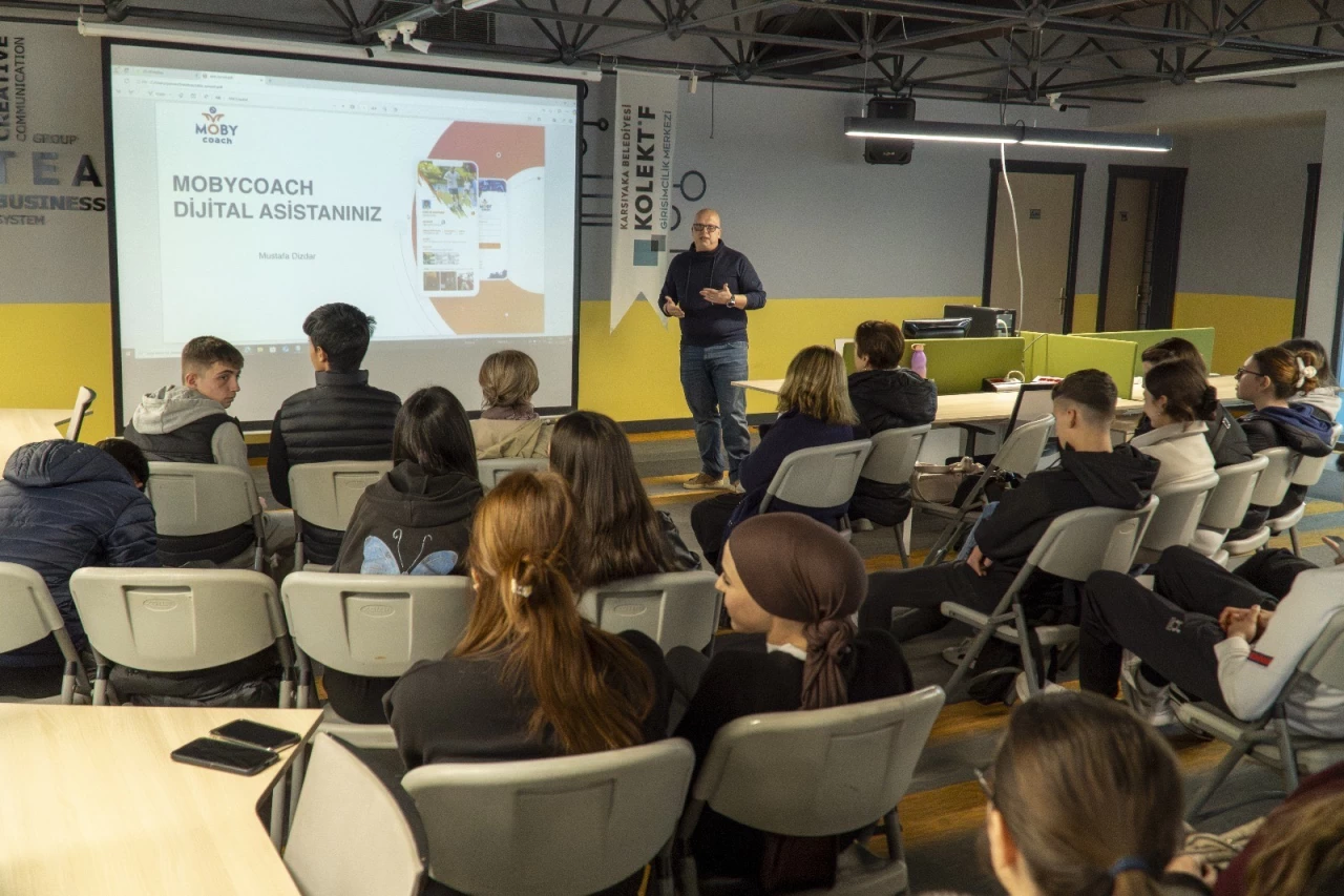 Etkinliğe katılan yaklaşık 20 lise son sınıf öğrencisi, gerçek girişimcilik hikayeleri ve başarı örnekleri üzerinden bilgi edinme fırsatı buldu. Öte yandan; üniversite sınavına hazırlık ve meslek seçimi gibi kariyerleri açısından yaşamalarının önemli bir döneminde bulunan gençlere, sürdürülebilir girişimcilik modelleri, dijital inovasyon ve sosyal etki odaklı projeler hakkında bilgi verilerek kariyer planlamalarına katkıda bulunuldu. Karşıyaka Kolektif Girişimcilik Merkezi Koordinatörü Hülya Gürcaner’in merkez hakkında bilgiler verdiği sunumu gerçekleştirmesi ile başlayan etkinlik programı, sunum ve deneyim aktarımı bölümüyle devam etti. Karşıyaka Kolektif girişimlerinden Swatchloop’u girişimin kurucu ortağı Gökberk Devrim, Zero One Touch’ı girişimci Kıvılcım Berrak, Moaby Coach’u ise girişimin kurucusu Mustafa Dizdar anlattı. Girişimleri ile ilgili sunum yapan girişimciler, gençlerden gelen soruları da cevapladı.