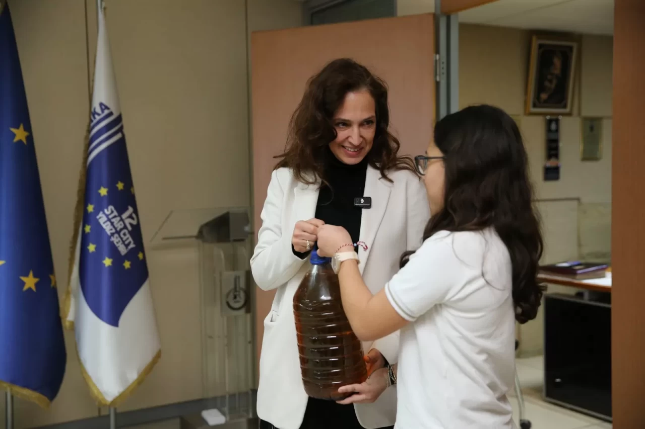 Geri dönüşüm konusundaki çalışmalarıyla fark yaratan Karşıyaka Belediyesi’nin çocukları teşvik etmek ve erken yaşta bilinçlenmelerini sağlamak amacıyla başlattığı ödüllü atık yağ toplama kampanyası devam ediyor. İklim Değişikliği ve Sıfır Atık Müdürlüğü’nün düzenlediği kampanyanın ilk katılımcısı Hamdullah Suphi Tanrıöver Ortaokulu 7. sınıf öğrencisi Ece Gölcük oldu. Topladığı 5 litre atık bitkisel yağı Karşıyaka Belediye Başkanı Yıldız Ünsal’ı ziyaret ederek kendisine teslim eden Gölcük, çevre bilincine katkısı nedeniyle spor çantası ve termos ile ödüllendirildi.