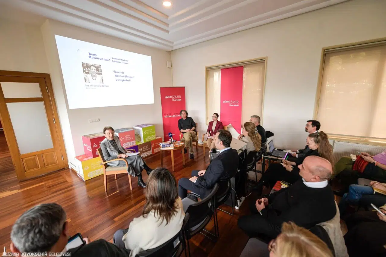 İzmir Büyükşehir Belediye Başkanı Dr. Cemil Tugay’ın başlattığı “Güzel İzmir Hareketi” kapsamında düzenlenen Şato’daki söyleşide kamusal alanlar masaya yatırıldı. “Kent Konuşur mu?” sorusuna yanıt arayan İzmir, katılımcı tasarım ve ortak akılla şehri birlikte güzelleştirme mesajı verdi.