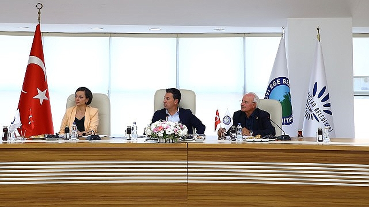 Karabağlar Belediyesi Başkanlık Salonundaki toplantıya Kıyı Ege Belediyeler Birliği Başkanı aynı zamanda Muğla Büyükşehir Belediye Başkanı Ahmet Aras, Dikili Belediye Başkanı Adil Kırgöz, Ayvalık Belediye Başkanı Mesut Ergin, Tire Belediye Başkanı Hayati Okuroğlu ve Narlıdere Belediye Başkan Yardımcısı İsmail Ay ile Kıyı Ege Belediyeler Birliği Genel Sekreteri Hurşit Akdemir de katıldı.