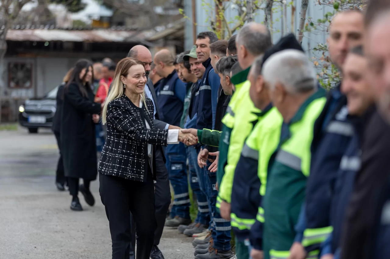 Belediye çalışanlarıyla hem bayramlaşan hem de onların taleplerini ve ihtiyaçlarını dinleyen Konak Belediye Başkanı Nilüfer Çınarlı Mutlu,