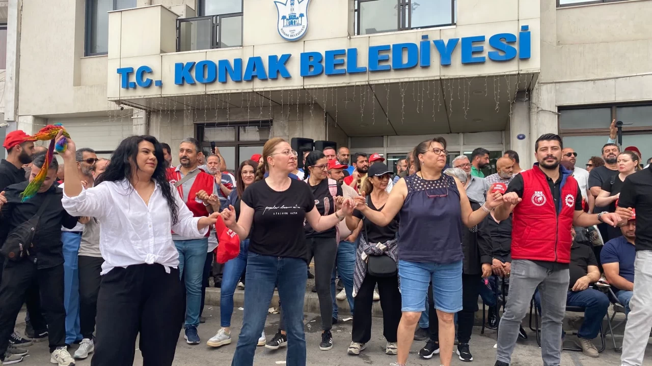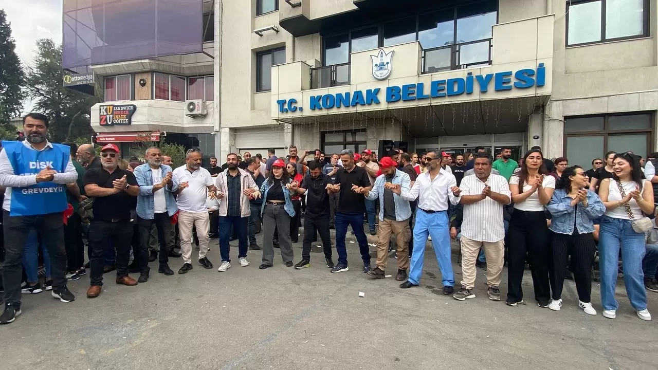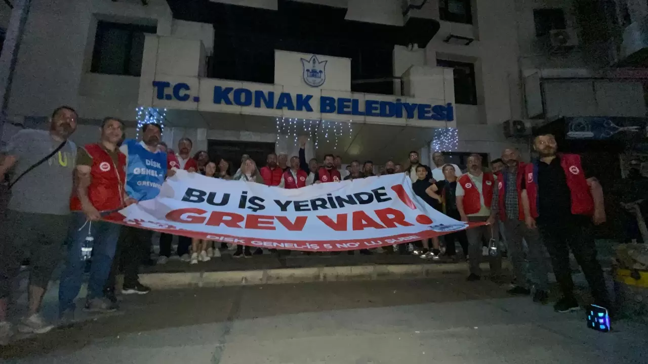 Konak Belediyesi’nin şirketlerinden MER-BEL’de örgütlü Genel İş İzmir 5 Nolu Şube ile belediye adına Sosyal Demokrat Kamu İşverenleri Sendikası (SODEMSEN) arasındaki 11’inci dönem TİS görüşmeleri tıkanması üzerine grev başladı.