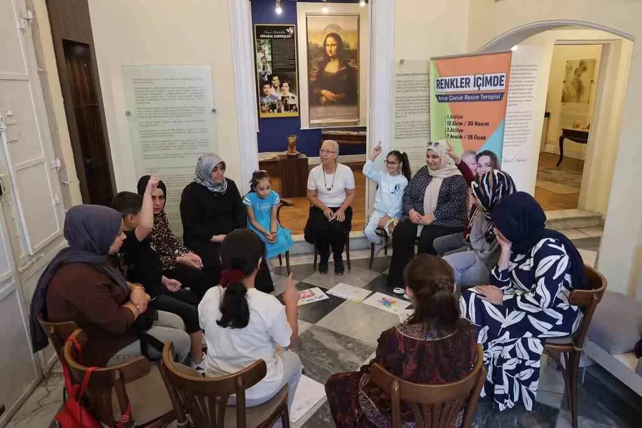 Konak Belediyesi, Art Terapi Derneği ve Kadın Haklarını Koruma Derneği iş birliğinde hayata geçirilen “Renkler İçimde Anne-Çocuk Resim Terapisi” atölyesinin ilki İzmir Kadın Müzesi’nde gerçekleştirildi. Art Terapi Derneği Başkanı Nursen Ener ve Kadın Haklarını Koruma Derneği İzmir Şube Yönetim Kurulu Üyesi Emine Özcan’ın rehberliğinde başlayan çalışmaya 9-13 yaş arası Konaklı çocuklar ve anneleri katıldı. Yaklaşık iki saat süren etkinliğin ilk etabında çocuklar ve anneleri, suluboya, pastel ve kuru boya kullanarak resim yaptı. İkinci etapta ise yaptıkları resimleri hangi duygu ve düşüncelerle yaptıklarını ifade ettiler. Atölyeye katılan anneler ilk kez çocuklarıyla birlikte bir etkinlikte yer almaktan duydukları mutluluğu dile getirirken, çocuklar da ebeveynleriyle resim yaparak keyifli ve unutulmaz bir gün yaşadı. Toplam sekiz hafta sürecek olan atölye, her hafta cumartesi günleri İzmir Kadın Müzesi’nde düzenlenecek.