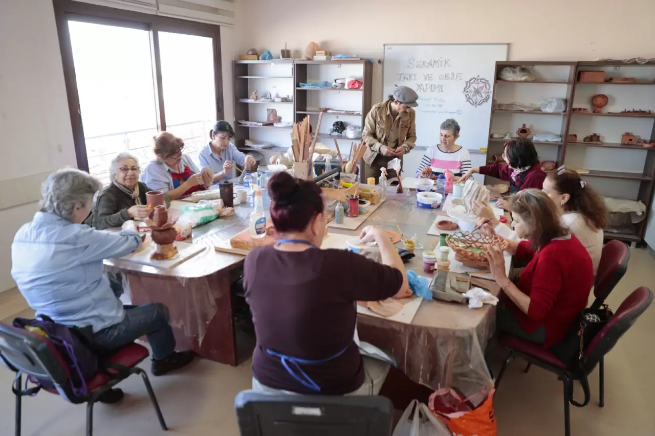 Konak Belediyesi’nin sosyal belediyecilik hizmetleri arasında yer alan ve özellikle emeklilerin yoğun ilgi gösterdiği Ziya Zişan Saadet Aytulun Kardeşler İleri Yaş Sağlıklı Yaşam Merkezi, 20’nin üstünde kurs programıyla ileri yaştaki Konaklıların, zamanlarını üreterek değerlendirmelerini sağlıyor, yaşam kalitesini artırıyor.