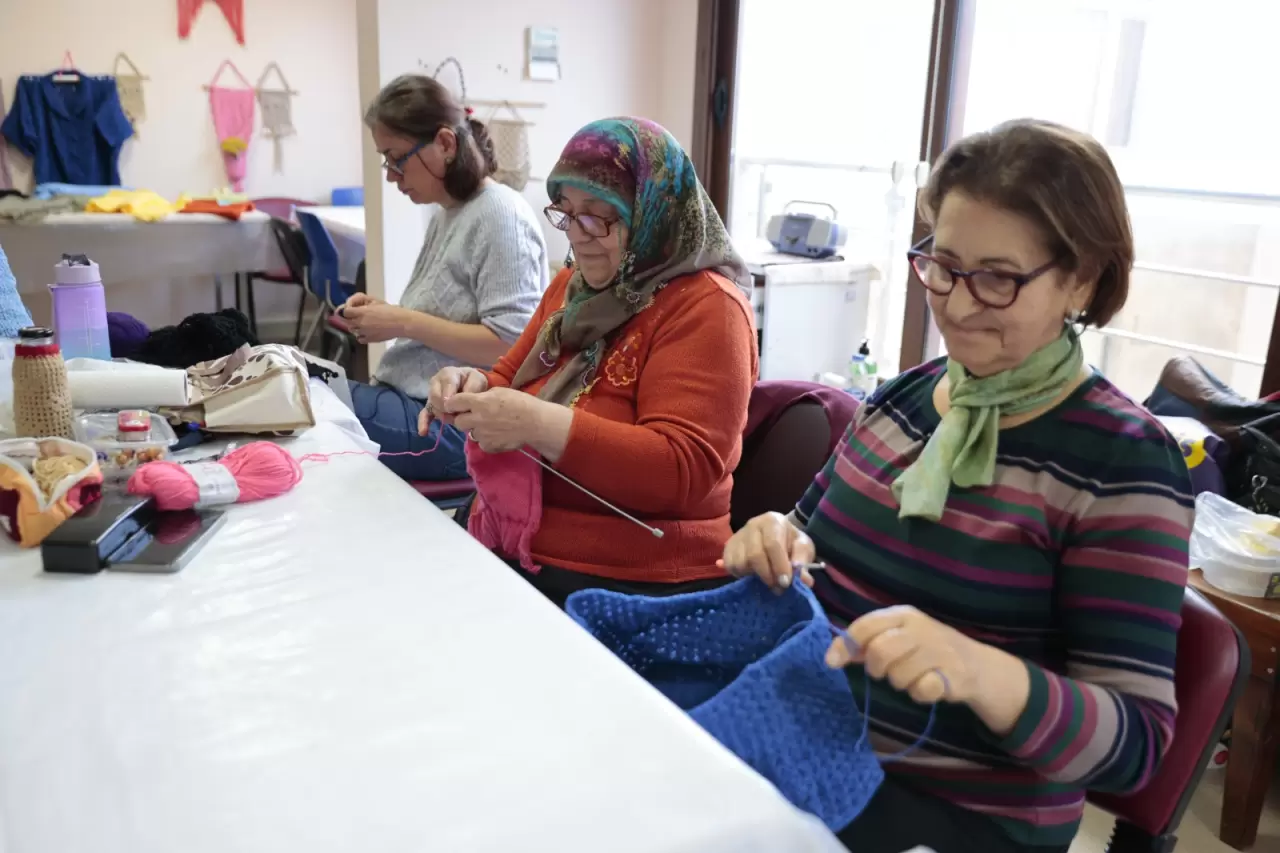 Merkezin en kıdemlilerinden yaşı 90’a yakın Sevim Tintas da, “Evde oturup da ölümü mü bekleyelim. Buraya gelmek bana hem yürüyüş oluyor, hem arkadaşlarla bir araya geliyoruz. Hocalarımızdan çok memnunuz. Burası bize iyi geliyor” diyerek yaşlıların sosyalleşmesinin ve üretimde bulunmasının ne denli önemli olduğuna dikkat çekti.