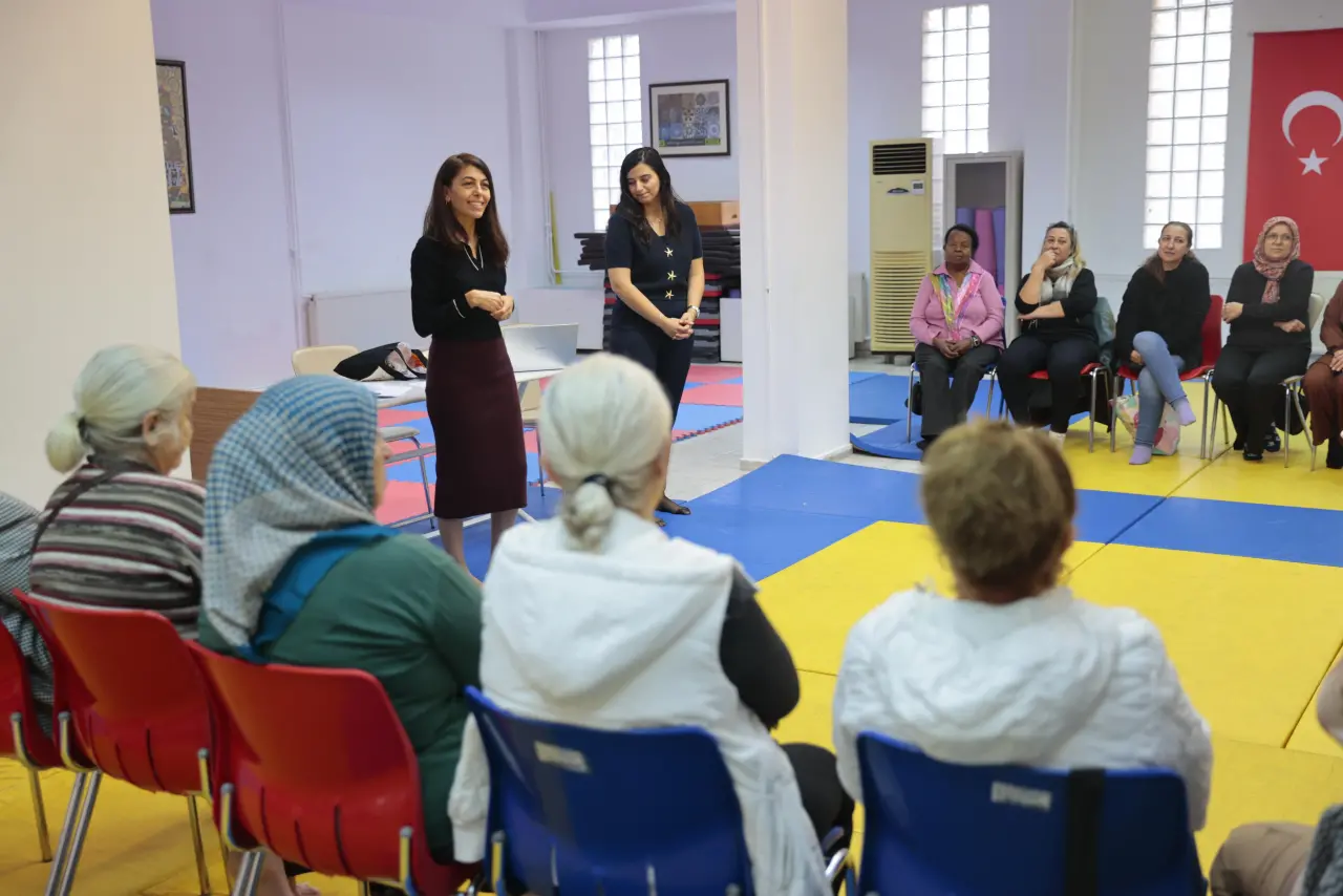 Konak Belediyesi, 25 Kasım Kadına Yönelik Şiddete Karşı Uluslararası Mücadele Günü kapsamında, belediyeye bağlı semt merkezleri ile kültür merkezlerinde tüm haftaya yayılan etkinliklerle farkındalık yaratıyor. Kadınların şiddet konusunda bilinçlenmesi ve yasal haklarını öğrenmesiyle birlikte güçlenmelerini amaçlayan etkinliklerin ilki Gültepe Semt Merkezi’nde gerçekleştirildi. Merkezdeki kurslara devam eden kadınların katılım gösterdiği “Kadına Yönelik Şiddetle Mücadele ve Güvenlik Planı Oluşturma” konulu atölye çalışmasında, Konak Belediyesi Kadın ve Aile Hizmetleri Müdürlüğüne bağlı “Eşitlik ve Kadın Danışma Birimi”nden Sosyal Hizmet Uzmanı Esra Çakıçı Akgün ile Uzman Halk Sağlığı Hemşiresi Aysun Çobadak Çalt yaptıkları interaktif sunumla bilinç ve farkındalık sağladı. Konak Belediye Başkanı Nilüfer Çınarlı Mutlu, 26 Kasım’da düzenlenecek “Kadına Yönelik Şiddetle Mücadelede Belediyelerin Rolü” temalı panel başta olmak üzere tüm etkinliklere kadınları davet ederek, “Konaklı kadınlarla bir araya geliyor, dayanışmamızı büyütüyoruz. Şiddete karşı dayanışmayla güçleniyoruz. Sesimizi güçlendirmek için tüm kadınları farkında olmaya davet ediyoruz” dedi.