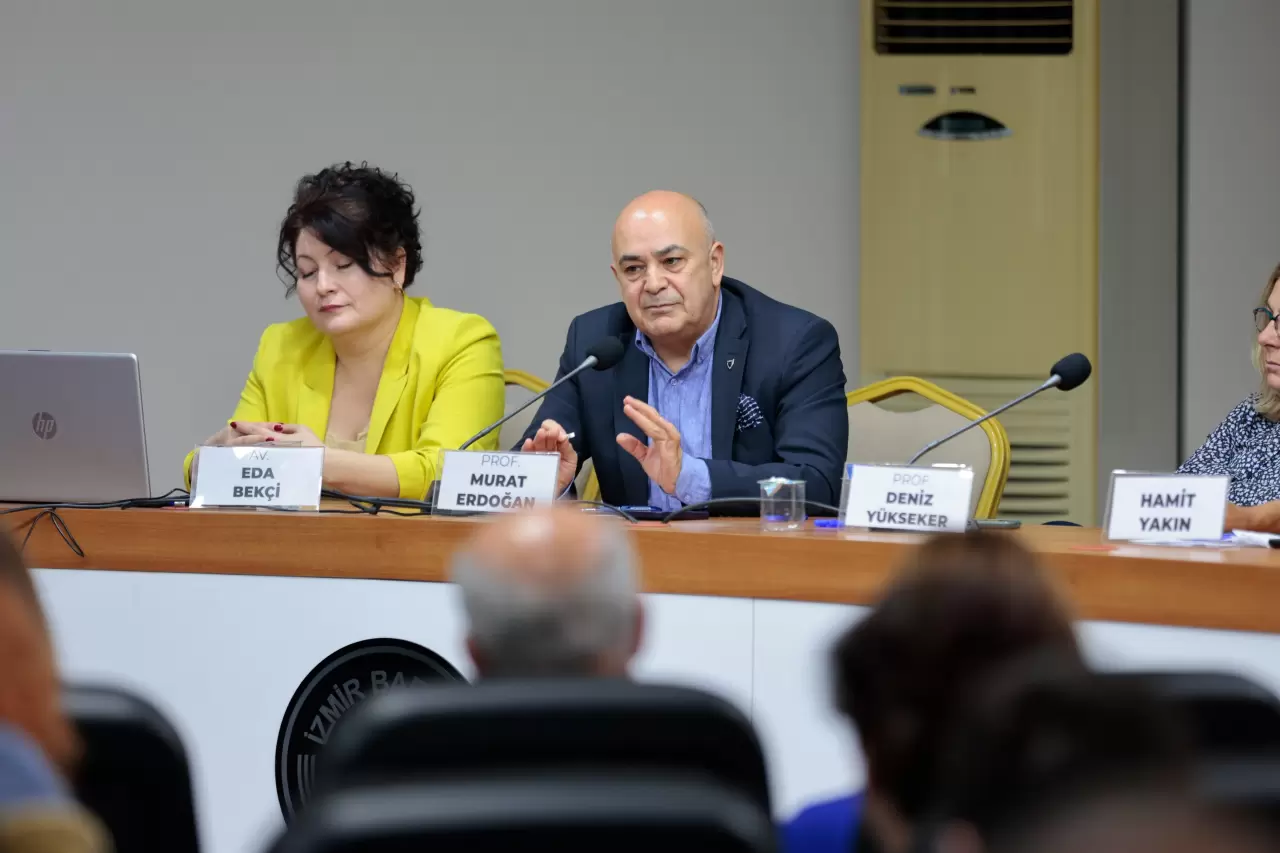 Açılış konuşmalarıyla başlayan sempozyum oturumlarla devam etti. Konak Mülteci Derneği Başkanı Hamit Yakın ve İzmir Barosu Yönetim Kurulu Üyesi Av. Dinçer Dikmen’in moderatörlüğünde yapılan panellerde Prof. Dr. Murat Erdoğan, Av. Eda Bekçi, Prof. Dr. Deniz Yükseker, Araştırma Görevlisi Çağla Ekin Güner, Birleşik Tekstil Dokuma ve Deri İşçileri Sendikası Başkanı Mehmet Türkmen, Av. Hannan Mouselli Dagır, Dr. Lülüfer Körükmez ve Dr. Erkin Başer konuşmacı olarak yer aldı.