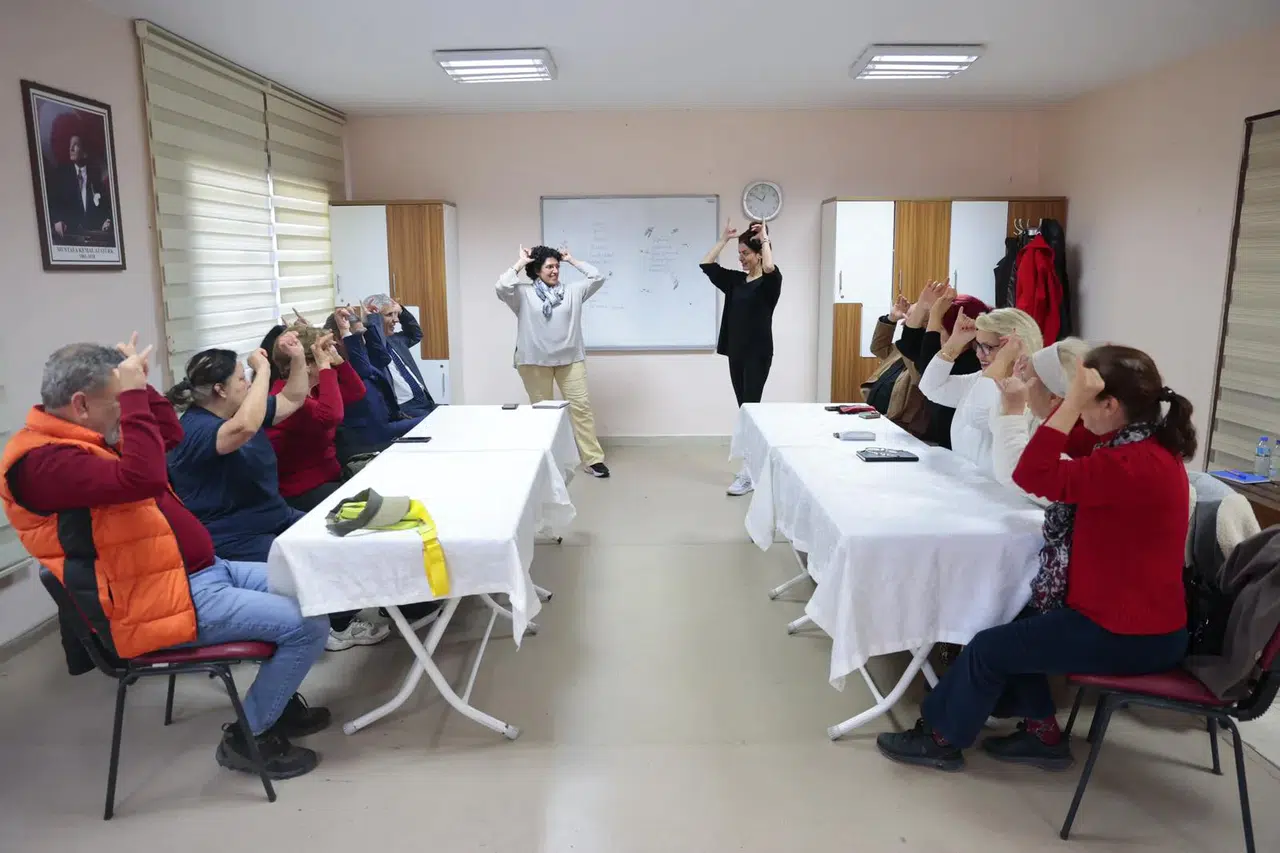 Konak Belediyesi Ziya – Zişan – Saadet Aytulun Kardeşler İleri Yaş Sağlıklı Yaşam Merkezi, bünyesinde açtığı kurslarla hem fark hem de farkındalık yaratmaya devam ediyor. Konak Halk Eğitim Merkezi işbirliğinde açılan İşaret Dil Kursu en çok ilgi gören kurslar arasında yer alıyor. Eğitmen Ezgi Morkoç rehberliğinde yürütülen İşaret Dili Kursu katılımcıları, burada öğrendiklerini hayatlarına taşıyarak herkese örnek oluyor. İçlerinde işitme engelli kursiyerlerin de yer aldığı eğitimlere katılan üyeler, iletişimin önündeki engelleri bir bir kaldırıyor. Konak Belediye Başkanı Nilüfer Çınarlı Mutlu’nun “Konak’ta, engelleri değil imkanları büyüten bir anlayışla çalışıyoruz” sözünün birebir karşılık buluğu kurstan faydalanan üyeler ailelerinde, sokakta, markette, iş yaşamında engelli bireylerle iletişimde aktif olarak işaret dilini kullanıyor. Hep birlikte etkinliklere de katılan kursiyerler, İstiklal Marşını işaret diliyle okudukları performanslarıyla da farkındalık yaratıyor.