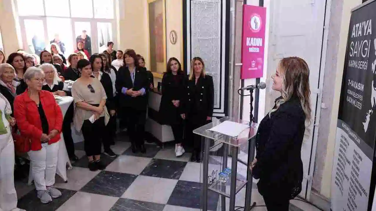 Serginin açılış konuşmasını yapan Konak Belediye Başkanı Nilüfer Çınarlı Mutlu, Türk kadınının kazanımlarında Mustafa Kemal Atatürk’ün verdiği emeğe dikkat çekti. Sergi için bir araya gelen tüm sanatçılara teşekkür eden Başkan Mutlu, Kadın Müzesi’ni geliştirerek yeniden yapılandıracaklarının da sinyalini verdi. Kadın üretiminin, sanatın daha çok görünür olduğu bir müze oluşturacaklarını ifade eden Başkan Mutlu, “Türk kadınının bugün içinde bulunduğu her türlü zorluğa rağmen pek çok hakkının elde edilmesini sağlayan Atamızı anmak için İzmir’in çok değerli kadın sanatçıları bir araya geldi ve bize bu harika sergiyi hazırladı. Bu sanatçılar arasında benim çok kıymetli dostlarım var. Çok uzun yıllardır birlikte mücadele ettiğimiz, görüştüğümüz ve bu desteklerini, emeklerini Konak Belediyesi’nden esirgemedikleri için onlara ayrıca çok teşekkür ediyorum. İçinde bulunduğumuz müze de çok anlamlı. Bu bir kadın müzesi ve Türkiye’deki az sayıda kadın müzesinden biri. Biz bu dönem sizlerin desteğiyle bu müzenin yeniden yapılandırılmasını sağlamak istiyoruz. Gerçekten daha fazla kadınların üretimine, sanatının sergilenmesine yardımcı olacak bir mekan haline getirmek istiyoruz” diye konuştu.