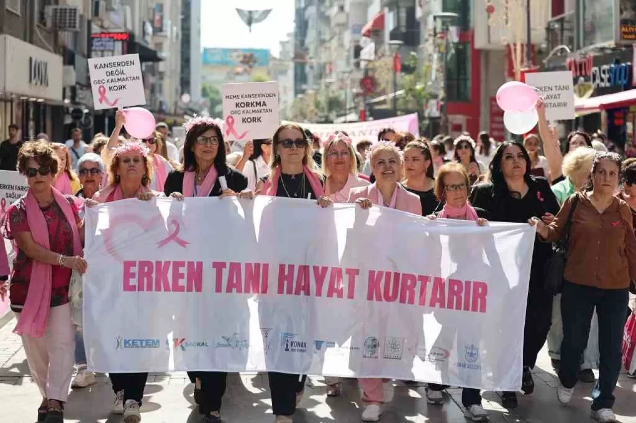 Meme Kanseri Bilinçlendirme ve Farkındalık Ayı etkinlikleri kapsamında sivil toplum kuruluşları ile el ele veren Konak Belediyesi, erken tanının önemine dikkat çekmek amacıyla basın açıklaması ve yürüyüş düzenledi. Konak Kent Konseyi, İzmir Kadın Kuruluşları Birliği, Sağlıkta Kalite Derneği (SağKal), Meme Kanseri ile Savaşım Derneği (MEMEKANDER), İzmir Meme Hastalıkları Derneği, Kanserle Dans Derneği, Kanser Erken Teşhis, Tarama ve Eğitim Merkezi (KETEM), Alsancak Koruma ve Güzelleştirme Derneği ve İzmir Aşkına Derneği iş birliğiyle Türkan Saylan Kültür Merkezi önünde yapılan etkinliğe; Konak Belediye Başkanı Nilüfer Çınarlı Mutlu’nun yanı sıra Konak Belediye Meclis Üyeleri, Cumhuriyet Halk Partisi Konak İlçe Başkanı Ozan Ali İlgazi, İl ve İlçe Yöneticileri, İlçe Gençlik ve Kadın Kolları, İzmir Tınaztepe Üniversitesi Sağlık Bilimleri Fakültesi Hemşirelik Bölümü Öğrencileri, sivil toplum kuruluşlarının temsilcileri, muhtarlar ve vatandaşlar katıldı. Erken tanının önemine dikkat çeken konuşmalar ve etkinliğe renk katan dans gösterilerinin ardından meme kanserini simgeleyen pembe renkli balonların gökyüzüne bırakılmasıyla yürüyüşe geçildi. Kıbrıs Şehitleri Caddesi’ni pembe renge bürüyen korteje esnaf ve vatandaşlar da alkışlarla destek verdi. ÖSYM Binası önünde son bulan yürüyüşte “Erken Tanı Hayat Kurtarır” yazılı pankart açılırken, pembe renli balon, fular ve farkındalık mesajlarının yer aldığı dövizler taşındı.