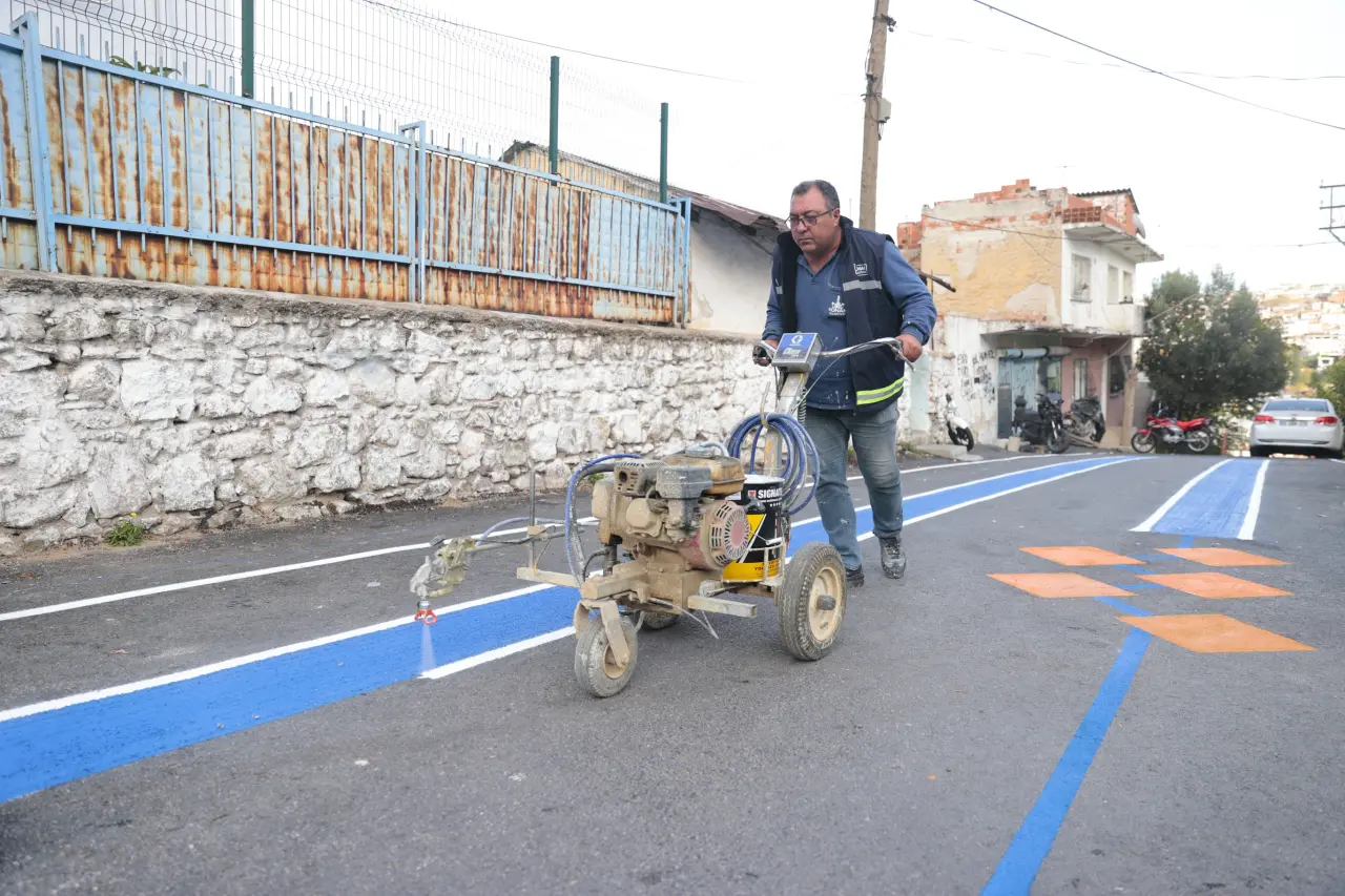 Konak Belediyesi’nin, öğrencilerin yaya güvenliğini sağlamak ve sürücülerin farkındalığını artırmak için başlattığı okul önlerindeki ‘Renkli Yol Uygulaması’, bu kez Yeşiltepe İlkokulu’nda gerçekleştirildi. Akarcalı Mahallesi 1088 Sokak’ta yer alan okulun sokağı, belediyenin Fen İşleri Müdürlüğü ekipleri tarafından, 2025-2026 eğitim yılı başlangıcında tamamen yenilemişti. Baştan sona kazılarak sıfırdan asfaltlanan sokakta şimdi de Renkli Yol Uygulaması tamamlandı. Öğrenci ve veliler başta olmak üzere tüm mahalle sakinlerinin beğenisini toplayan çalışma kapsamında, okul önündeki sokak rengarenk boyanarak desen ve geometrik şekillerle üslendi. Yapılan çalışma sonucu, sokağı kullanan sürücülerin farkındalığı artarken öğrenciler de rengarenk bir okul yoluna kavuştu.