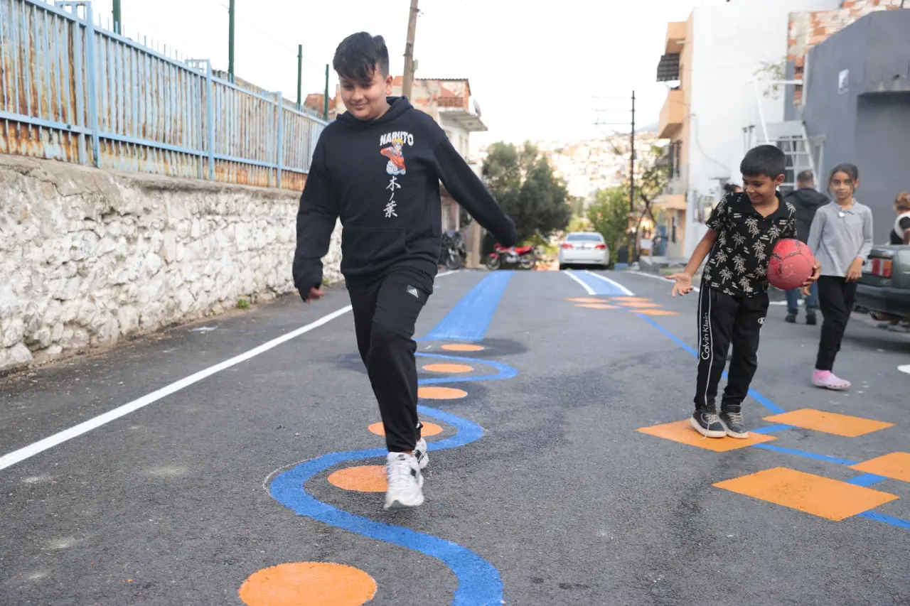 Konak Belediyesi’nin ilçedeki okul yollarını hem eğlenceli hem güvenli hale getiren Renkli Yol Uygulaması, Akarcalı Mahallesi’ndeki Yeşiltepe İlkokulu’nun sokağında da hayata geçti.