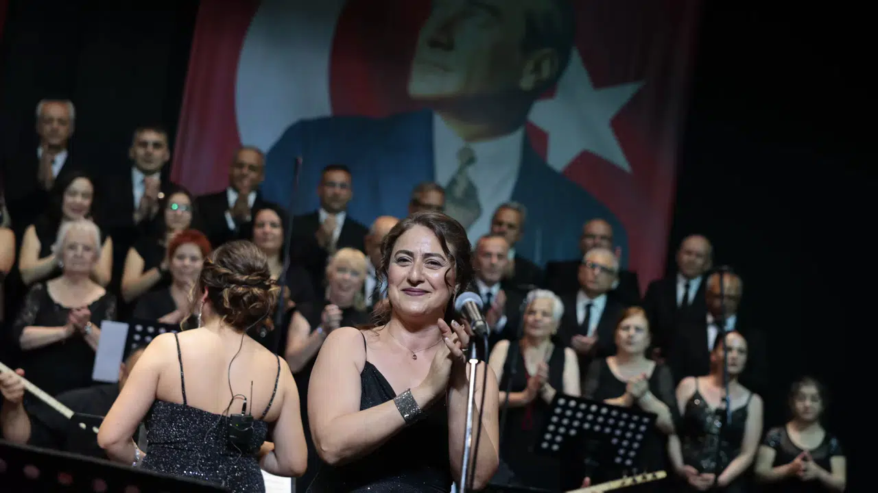 Konak Belediyesi Türk Halk Müziği Topluluğu’nun hazırladığı “Doğu’dan Sesler” konseri, Selahattin Akçiçek Kültür Merkezi’nde gerçekleştirildi. Gülriz Sururi Sahnesi’nde düzenlenen etkinliği izlemeye gelenler arasında CHP Konak İlçe Başkanı Ozan Ali İlgazi, MHP Konak İlçe Başkanı Ahmet Yeniçırak, sivil toplum kuruluşlarının temsilcileri, muhtarlar ve çok sayıda vatandaş yer aldı. Şef Bahar Almaç yönetimindeki Konak Belediyesi Türk Halk Müziği Topluluğu, “Al Eyvanda Han Kalmadı”, “Kevengin Yollarında”, “Zeytin Yaprağı Yeşil”, “Bitlis’in Önünde Bağlar”, “Konma Bülbül”, “Garip Bir Kuştu Gönlüm”, “Ay Doğar Aşar Gider”, “Tanburam Rebap Oldu”, “Yeni Hamamın Üstüyem” gibi Anadolu’nun birçok yöresinden türküler seslendirdi. Gecenin sunuculuğunu da üstlenen Almaç, türkü anonslarında zaman zaman Aşık Mahzuni Şerif, Nesimi Çimen, Muhlis Akarsu, Yavuz Top, Celal Güzelses gibi önemli müzik ustalarını da andı. Koro kadar gecede sahne alan solistler de performanslarıyla göz doldururken, İzmir Folklor Gençlik ve Spor Kulübü Derneği’nin yöneticileri de seyircileri halay performansıyla coşturdu.