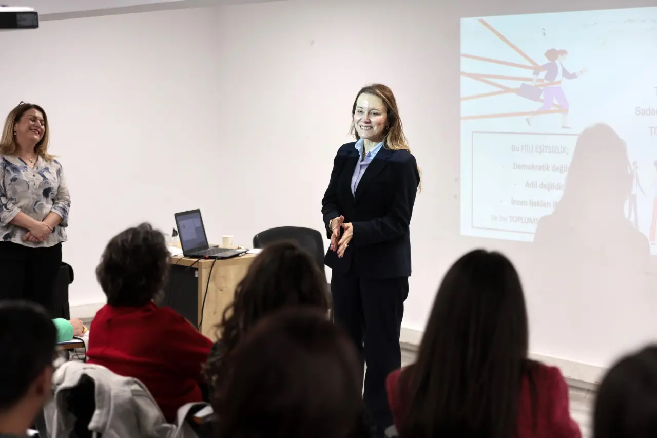 Sunumun ardından gerçekleştirdiği konuşmada tüm bireylerin hizmetlere eşit erişimini hedefleyen Yerel Eşitlik Eylem Planı’nı çok önemsediklerini belirten Konak Belediye Başkanı Nilüfer Çınarlı Mutlu, “Konak’ta kadınları daha görünür ve güçlü kılmanın yanı sıra kozmopolit bir ilçede uçlarda yaşamlara sahip olan kadınların birlikte mücadele etmesini sağlamak istiyoruz. Şiddetten arındırılmış, toplumsal cinsiyet eşitliğinin tüm kılcallara yayılmış olduğu bir Konak hedefimiz var. Bunun için çok çalışıyoruz ve sizlerin desteği de çok kıymetli. Bu plan, Konak Belediyesi’nin tüm birimlerinin, tüm yöneticilerinin ve tüm çalışanlarının ortak sorumluluğu. Hep birlikte, kadınların ve tüm dezavantajlı grupların kent yaşamına eşit, adil ve özgür bir şekilde katılabildiği bir Konak’ı mümkün kılacağız” dedi.