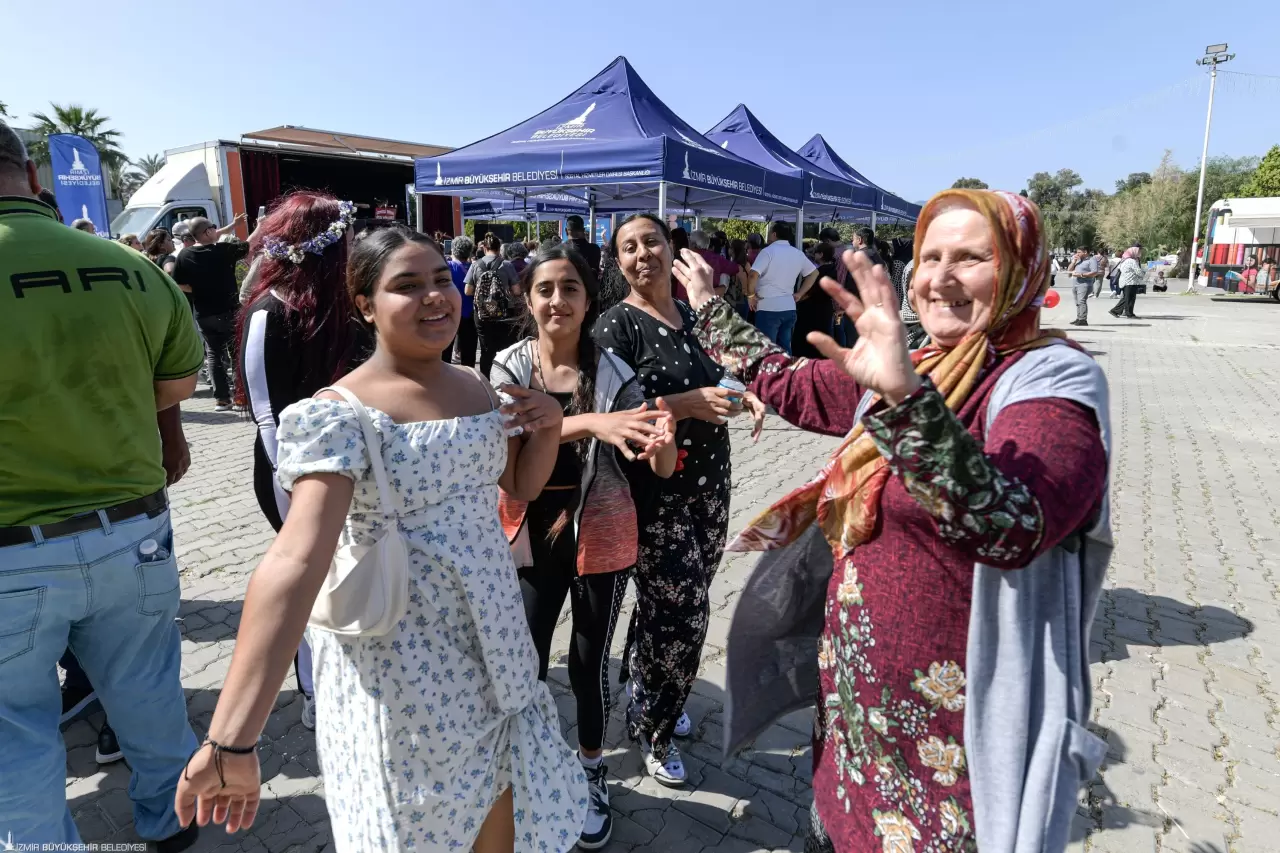 İzmir’de Hıdırellez şenlikleri ikinci gün de devam etti. Baharın başlangıcını ve doğanın uyanışını sembolize eden Hıdırellez, Kültürpark’ta yapılan piknik ve eğlenceli etkinliklerle kutlandı. Sosyal Hizmetler Dairesi Başkanlığı tarafından çocuklar için şişme oyun alanları, atölye stantları ve ikram araçları hazırlanırken, Kültür ve Sosyal İşler Dairesi Başkanlığı tarafından da Gezici Sahne kuruldu. Vatandaşlar, İzmirli Birol’un 9/8’lik şarkılarıyla dans etti. Kutlama kapsamında Gezici Kütüphane de İzmirliler için hazır bulundu.