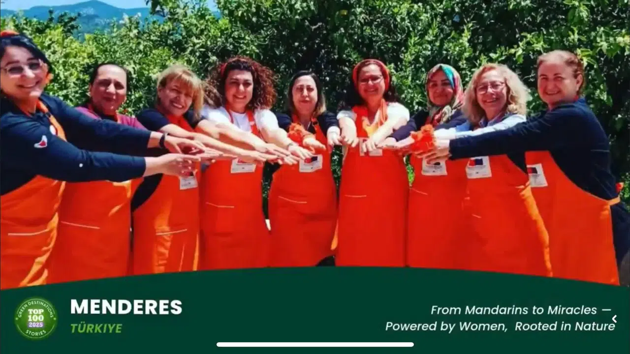 Menderes ‘Green Destinations Top 100 Stories’ yarışmasında büyük gurur yaşadı. Uluslararası bir kuruluş olan Green Destinations’un prestijli listesine giren Güm-Öz Turuncu Eller Tarımsal Kalkınma Kooperatifi Fransa’da düzenlenen törende ödülünü aldı. Menderes’i temsilen törene, İzmir Büyükşehir Belediyesi Turizm ve Fuarcılık Komisyonu Başkanı, İzmir Büyükşehir Belediyesi ve Menderes Belediyesi Meclis Üyesi Seyhan Müşerref Kuralı katıldı.