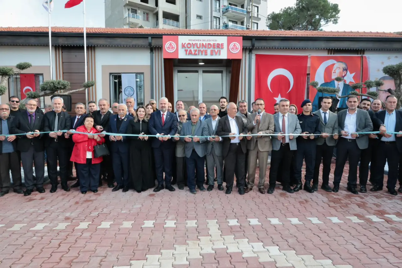 Mayıs'tan itibaren her ay yeni bir açılış yapan Menemen Belediyesi, yedinci açılışını Koyundere'de gerçekleştirdi. Bölge halkının taleplerine uygun şekilde tasarlanan Koyundere Taziye Evi, dualarla açıldı. Menemen Belediye Başkanı Aydın Pehlivan, "Sadece mutlu değil, en acı günlerinde de hemşehrilerimizin yanındayız." dedi.