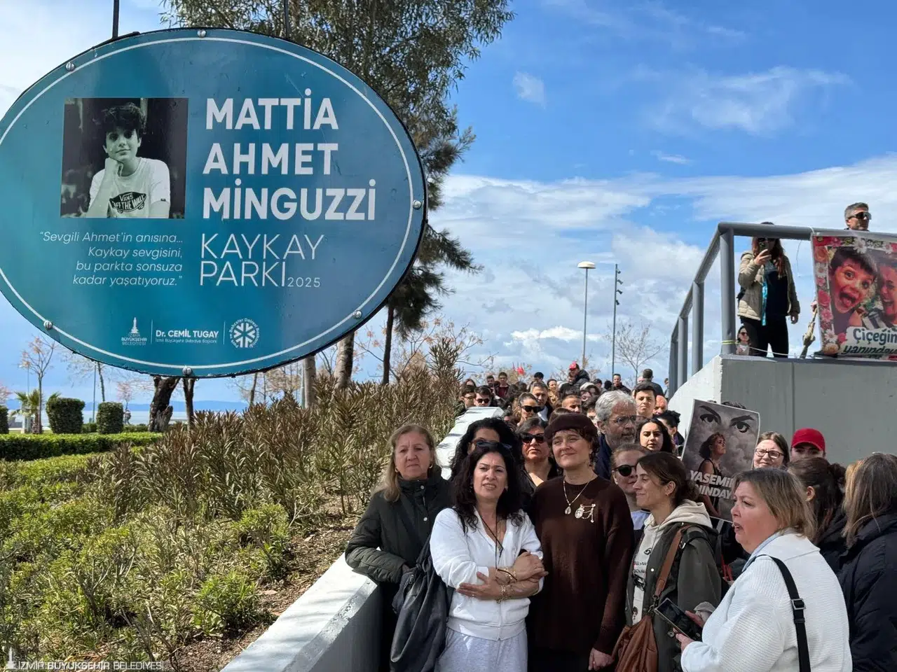 İzmir Büyükşehir Belediyesi tarafından İstanbul’da uğradığı saldırı sonucu hayatını kaybeden 14 yaşındaki Mattia Ahmet Minguzzi’nin adı verilen Karşıyaka’daki kaykay parkı anlamlı bir etkinliğe ev sahipliği yaptı. 28 Mart’ta oğullarının adının parka verilmesi nedeniyle İzmir Büyükşehir Belediye Başkanı Dr. Cemil Tugay’a teşekkür ziyaretinde bulunan Minguzzi ailesi, pazar günü de kaykay parkını ziyaret etti. İzmir halkı da aileyi yalnız bırakmadı. Ahmet Minguzzi’nin annesi Yasemin Minguzzi’ye eşlik eden İzmirli kadınlar, Mattia Ahmet Minguzzi fotoğrafları ve “Yasemin çiçeğimizin yanındayız” sloganıyla yürüdü. İzmirliler ailenin üzüntüsüne ortak olurken, sokak güvenliğinin önemine dikkat çekerek, gençlerin korunmasına yönelik beklentilerini dile getirdi.