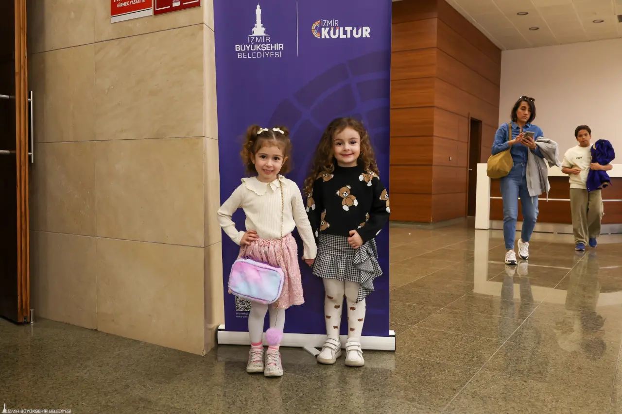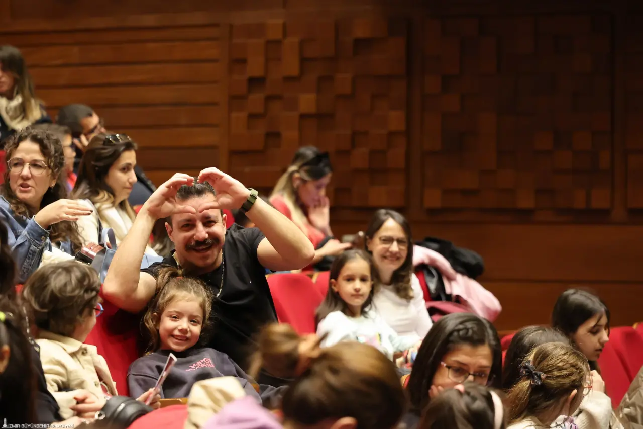 İzmir Büyükşehir Belediyesi iştiraki İzmir Kültür AŞ tarafından sahnelenen “Dünyanın Göbeğine Yolculuk” adlı müzikli çocuk oyunu, Ahmed Adnan Saygun Sanat Merkezi’nde minik izleyicilerle buluştu. Göbeklitepe’nin gizemli dünyasını sahneye taşıyan oyun, iki seans boyunca salonu dolduran çocuklara ve ailelerine unutulmaz bir gün yaşattı. Inspera Çocuk Tiyatrosu tarafından hazırlanan yapım, renkli sahne tasarımı, özgün müzikleri ve tempolu anlatımıyla büyük ilgi gördü. Gizemli bir tren yolculuğuyla başlayan hikâye, çocukları merak, keşif ve dostluk temaları etrafında gelişen eğlenceli bir maceraya sürükledi. Zaman zaman kahkahaların, zaman zaman alkışların yükseldiği salonda minik izleyiciler oyuna büyük bir heyecanla eşlik etti.