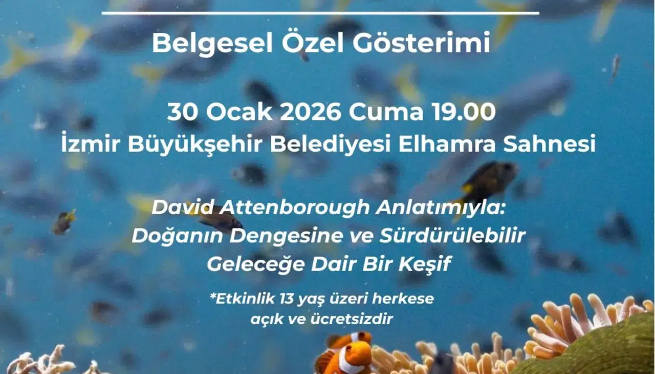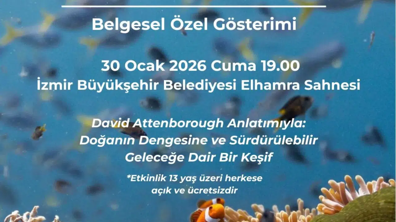 İzmir Büyükşehir Belediyesi, İzmir Akdeniz Akademisi ve Akdeniz Koruma Derneği iş birliğiyle, David Attenborough’nun anlatımıyla hazırlanan Ocean with David Attenborough belgeselini 30 Ocak 2026’da saat 19.00’da Elhamra Sahnesi'nde izleyicilerle buluşturuyor.