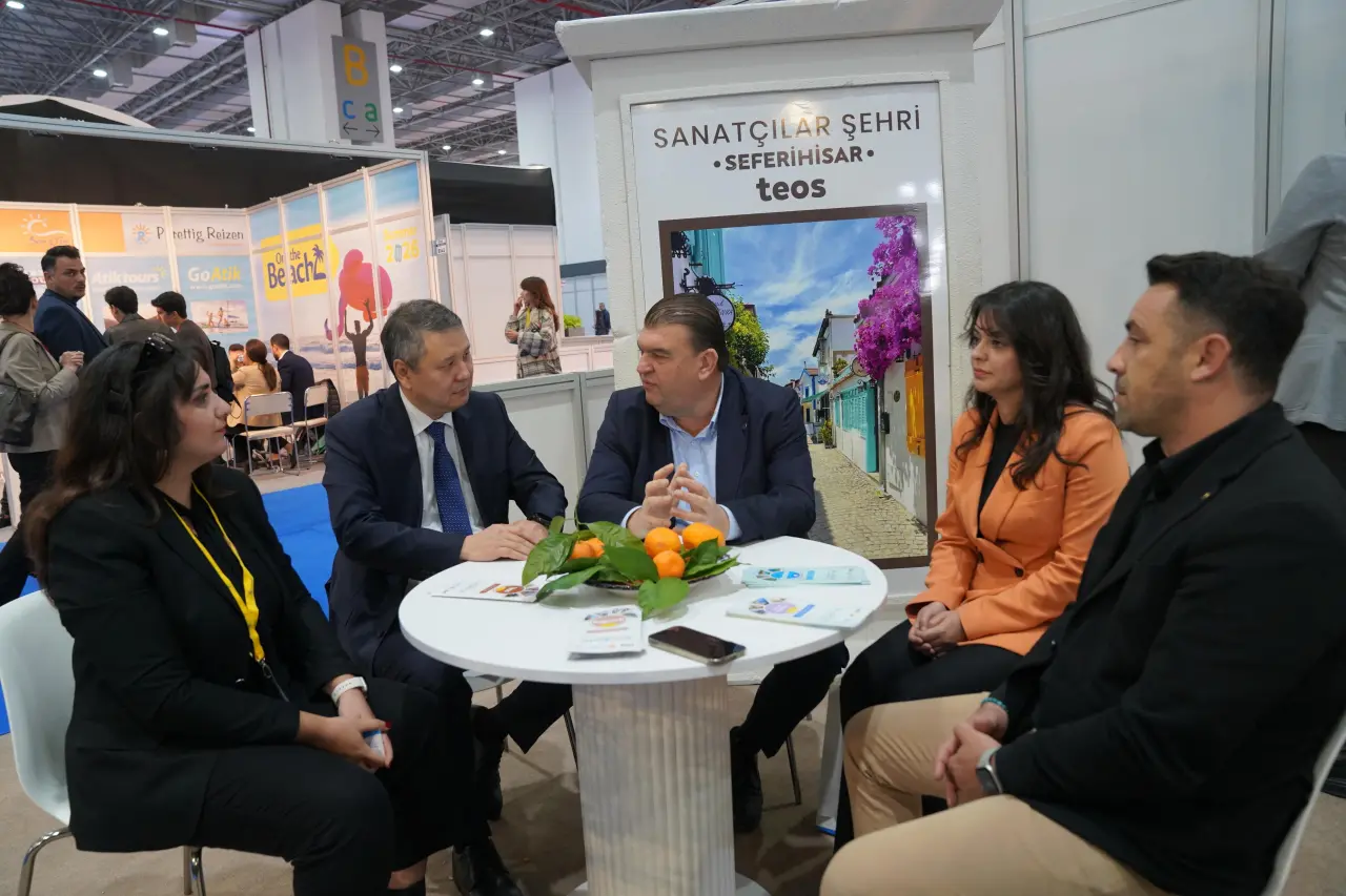 Kazakistan Başkonsolosu Bauyrzhan Akatov ve beraberindeki heyet, Seferihisar standını ziyaret ederek ilçenin turizm vizyonu, kültürel projeleri ve yeni dönem hedefleri hakkında Başkan Yetişkin’den bilgi aldı.