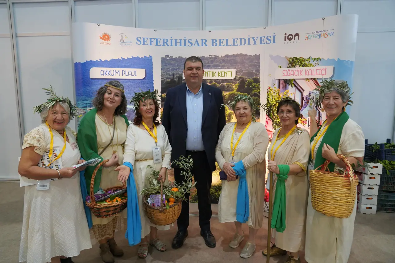 Doğası, tarihi dokusu ve sakin yaşam kültürüyle İzmir turizminin önemli merkezlerinden biri olan Seferihisar; mandalina, zeytinyağı gibi yöresel ürünlerini tanıtırken, yerel sanatçıların el emeği çalışmalarını da ziyaretçilerin beğenisine sundu. İlçenin özgün kimliğini yansıtan stant, ilk günden itibaren yoğun ilgi gördü.