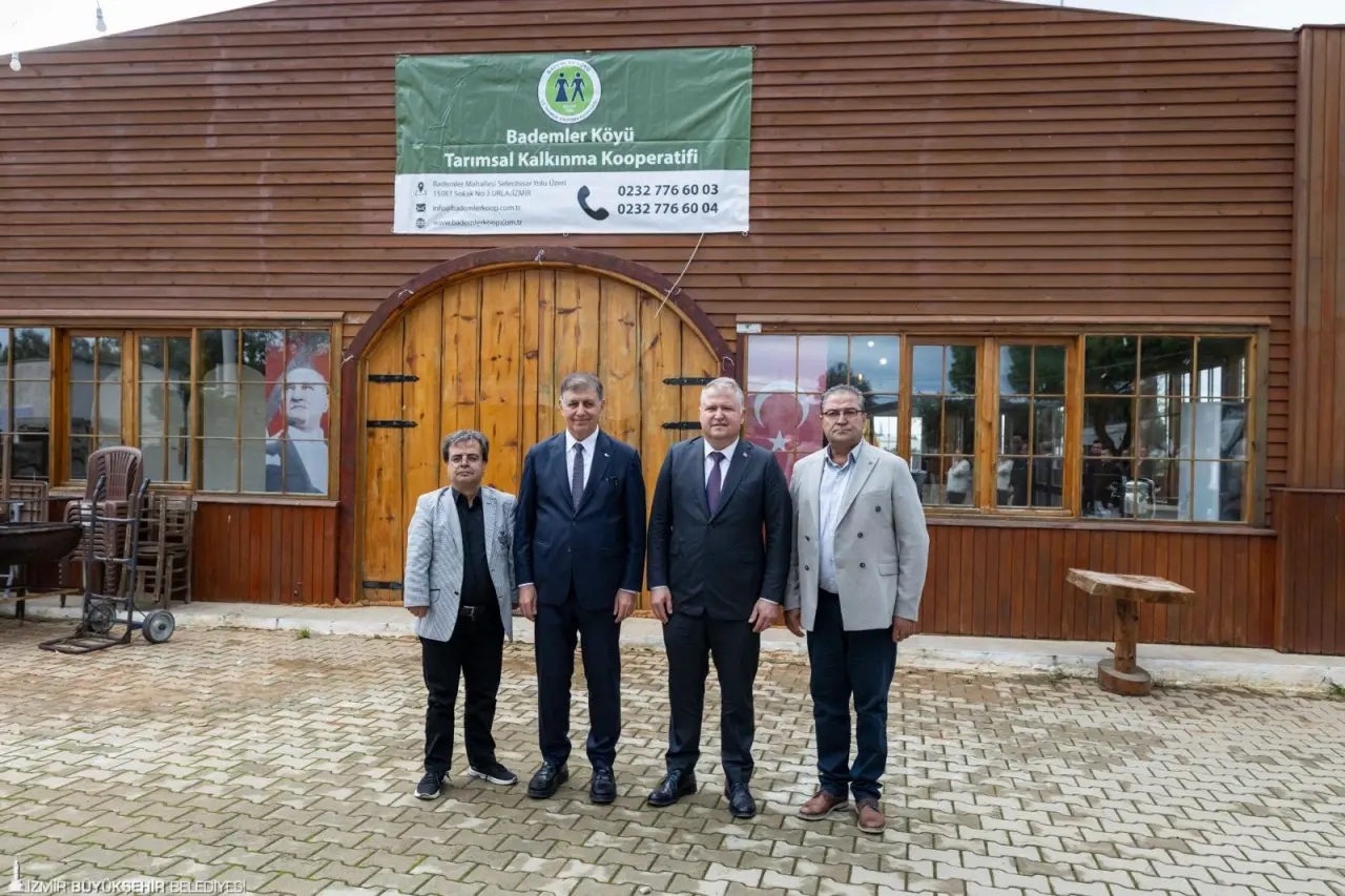 İzmirli üreticiler, zeytinde yeni sezonun hasadına hazırlanıyor. İzmir Büyükşehir Belediye Başkanı Dr. Cemil Tugay, erken hasat döneminde Urla’nın Bademler Köyü Tarımsal Kalkınma Kooperatifi’nin konuğu oldu. İzmir Büyükşehir Belediyesi’nin katkılarıyla kurulan Bademler Doğal Yaşam Köyü’nü ziyaret eden Başkan Tugay’a Urla Belediye Başkanı Selçuk Balkan, Bademler Tarımsal Kalkınma Kooperatifi Yürütme Kurulu Başkanı Seyfettin Şen, İzmir Büyükşehir Belediyesi bürokratları, kooperatif yönetimi ve üyeleri eşlik etti.