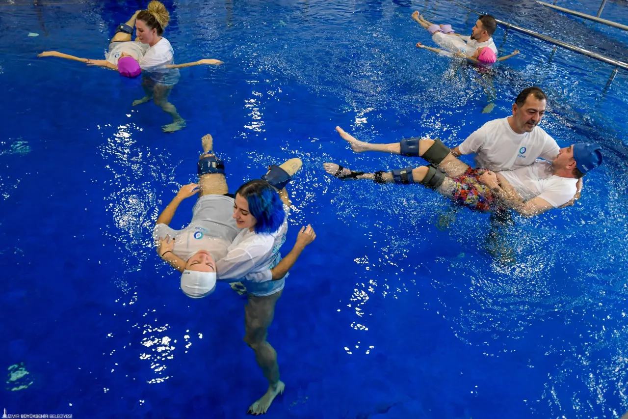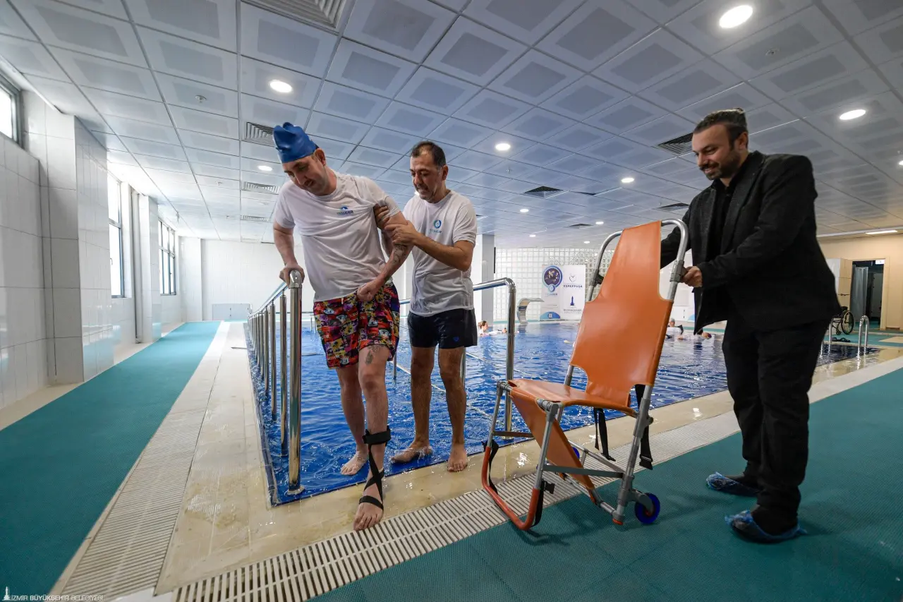 İzmir Büyükşehir Belediyesi, 3 Aralık Dünya Engelliler Günü kapsamında, engellileri suyun rahatlatıcı etkisiyle buluşturdu. Eşrefpaşa Hastanesi Buca Sosyal Yaşam Kampüsü Semt Polikliniği’nde bulunan hidroterapi havuzunda yapılan etkinlik, Terapötik Su Uygulamaları AR-GE ve Yaygınlaştırma Derneği (TESUDER) iş birliğinde düzenlendi. Terapötik su uygulamalarının iyilik haline etkisini görünür kılmak ve erişilebilir bir deneyim alanı oluşturmak amacıyla gerçekleştirilen özel buluşma; engellilerin su içinde güvenli şekilde desteklenmesini, beden farkındalığının artırılmasını ve suyun düzenleyici etkisinin deneyimlenmesini hedefledi. Etkinliğe katılan engelliler arasında Para Triatlon Dünya serisinde aldığı ikincilikle tarihimizde ilk kez kadınlar kategorisinde bu dalda madalya kazanan milli sporcu Kübra Dere de yer aldı. Para triatlon, para bisiklet ve para yüzme branşlarında çalışmalarını sürdüren Milli Takım Antrenörü Duran Arslan da engellilere su içi terapötik uygulama etkinliği düzenleyen uygulayıcılar arasında yer aldı.