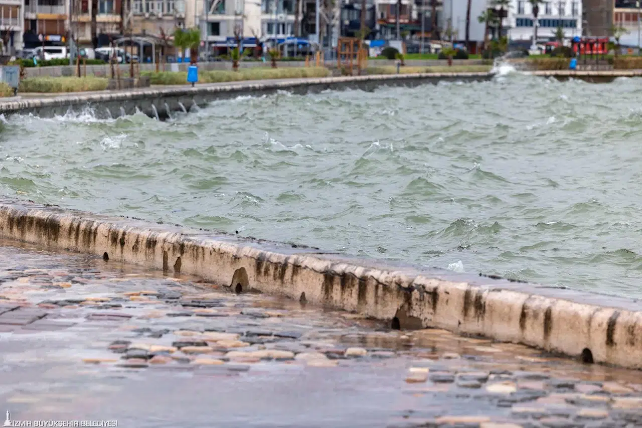 İzmir Büyükşehir Belediyesi ve İZSU ekipleri, Kordon ve Mavişehir başta olmak üzere kıyı hattında 24 saattir aralıksız görev yapıyor. 412 iş makinesi, 200 pompa ve 1365 personel ile müdahale sürdürülüyor. Mazgallarda geri basmaya karşı kontroller yapılırken, yol ve kavşaklarda su tahliye çalışmaları devam ediyor. Meteorolojik veriler anlık takip ediliyor; basınç değerlerinin yükselmesiyle birlikte deniz seviyesinin kademeli olarak normale dönmesi bekleniyor.