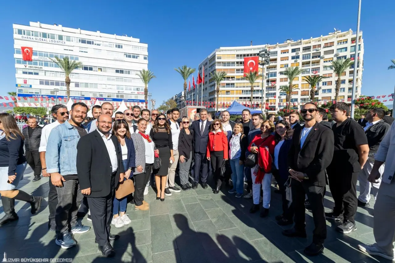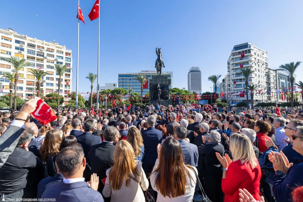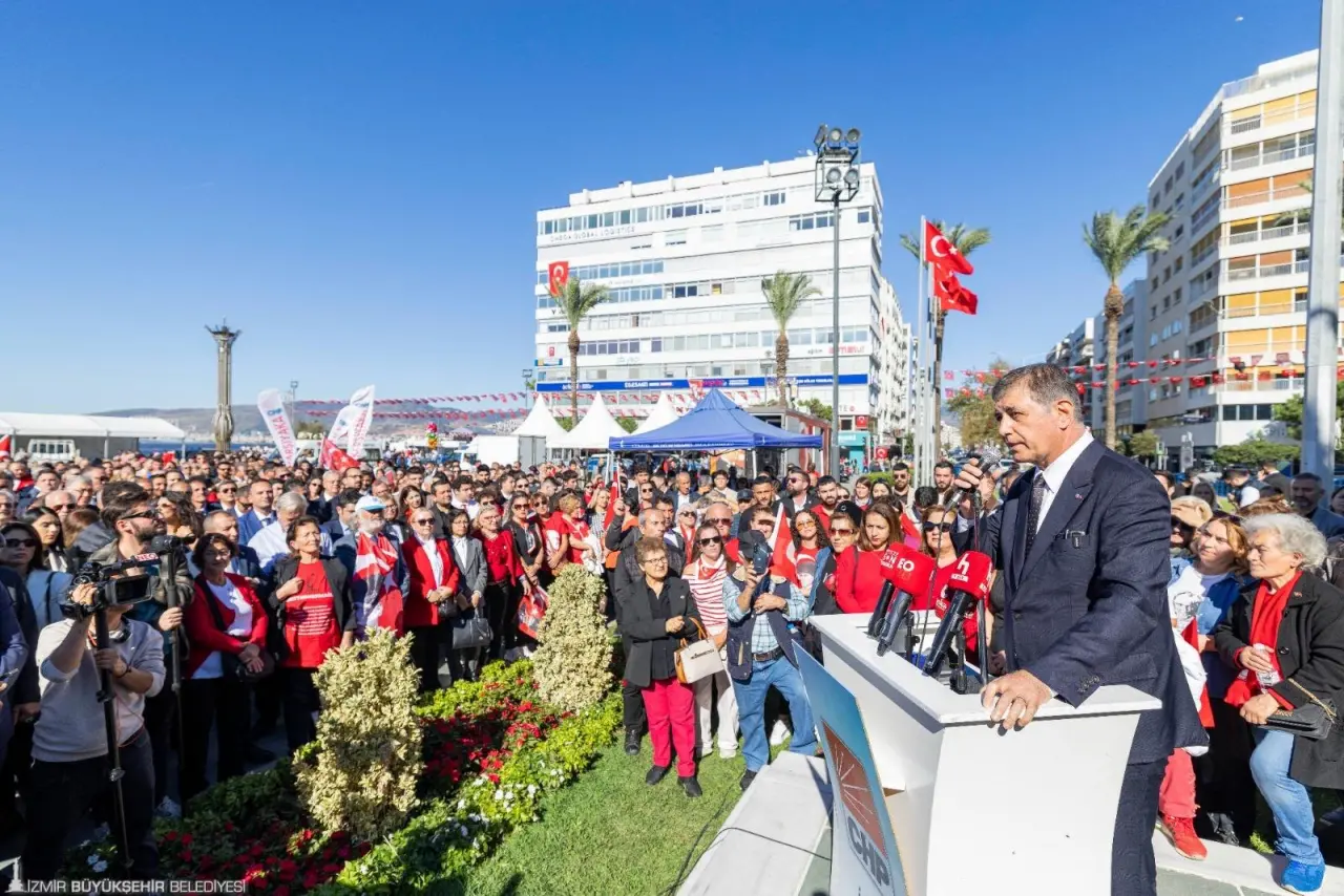 CHP İzmir İl Başkanı Çağatay Güç, “Ulu Önderimiz Gazi Mustafa Kemal Atatürk’ün 'En büyük eserim' dediği Cumhuriyet, bize bırakılmış bir miras değil; her gün yeniden korumamız gereken bir emanettir. O emanet, geleceğimizin güvencesidir. Genel Başkanımız Sayın Özgür Özel’in de ifade ettiği gibi 'Savunduğumuz bir mevzi değil, bir cephedir; bu cephe, demokrasinin ve halkın cephesidir'. Cumhuriyet Halk Partisi, 102 yıl önce halkı tebaa olmaktan çıkarıp yurttaş yapan iradenin bugünkü temsilcisidir. Darbelerle, yasaklarla, baskılarla sınandık ama halkımızın yanında durmaktan, onun iradesini savunmaktan asla vazgeçmedik. Biz, o iradeyi taşıyan, o mirası omuzlayan örgütleriz. Kurtuluşun şehri İzmir’de, Mustafa Kemal’in yolunda, halkın iktidarını kurmak için buradayız. Biz buradayız, Cumhuriyetin nöbetindeyiz. Biz buradayız, Çünkü biz Cumhuriyetiz. Yaşasın Gazi Mustafa Kemal Atatürk, yaşasın Cumhuriyet Halk Partisi, yaşasın Cumhuriyet” şeklinde konuştu.