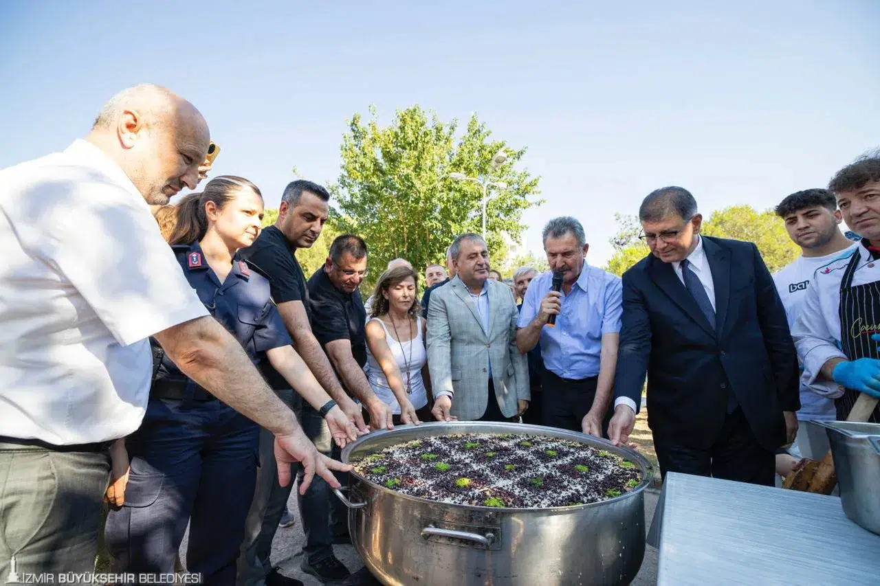 Karşıyaka Kaymakamı Özkan Demir, “Çok zor bir coğrafyada yaşıyoruz. Zor zamanlardan hep birlikte geçiyoruz. Bizi biz yapan değerlere her zamankinden daha fazla sarılmamız gerektiğine inanıyorum” dedi. Mustafa Kemal Mahalle Muhtarı Hanımşah Han, “Burada birliğin, bereketin sembolü olan aşure günü vesilesiyle bir araya geldik. Her yıl olduğu gibi bu yıl da farklılıklarımızı aynı kazanda kaynaştıran bu güzel gelenek sayesinde gönüllerimizi birleştiriyoruz” ifadelerini kullandı.