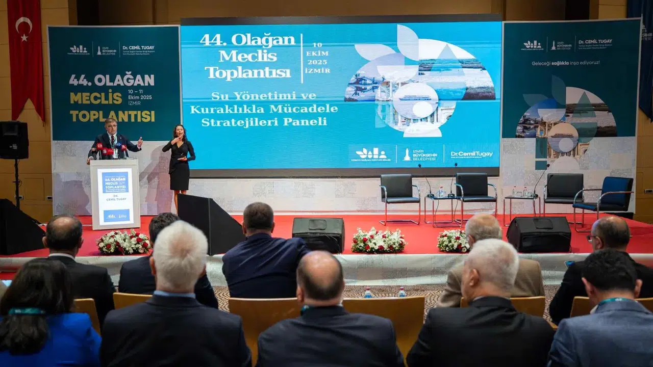 İzmir Büyükşehir Belediye Başkanı Dr. Cemil Tugay'ın başkanı olduğu Türkiye Sağlıklı Kentler Birliği'nin 44. Olağan Meclis Toplantısı, İzmir Büyükşehir Belediyesi'nin ev sahipliğinde başladı. “Su Yönetimi ve Kuraklıkla Mücadele Stratejileri” başlıklı bir panelin de düzenlendiği toplantının açılışında konuşan Başkan Dr. Cemil Tugay, su krizi ve kuraklığa değinerek, “Su krizi ile mücadelede geri kazanıma, toplama-tutma sistemlerine ve adil paylaşıma dayalı bir yeni düzeni yerel yönetimlerin merkezine yerleştirmeliyiz. Kentlerimizin geleceğini yeni sistemleri yerel düzeyde uygulama yeteneği belirleyecek ” şeklinde konuştu.