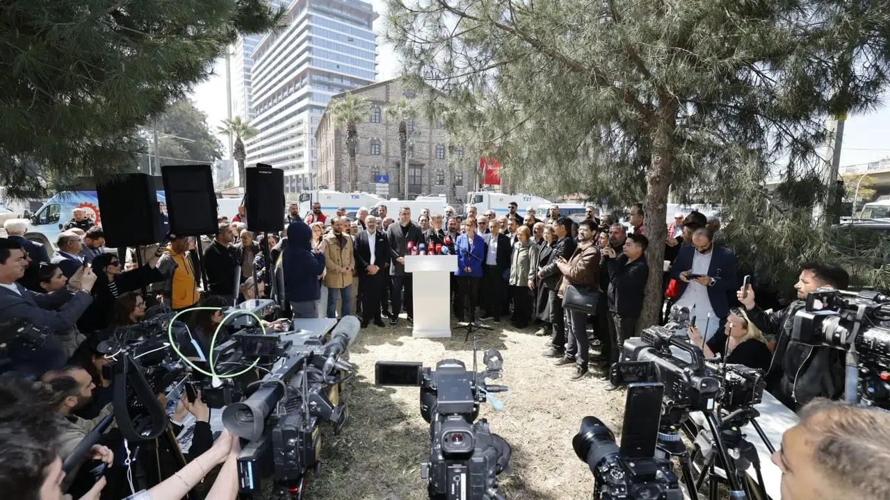 “İçeride belediyeye ait yüz milyonlarca liralık kamu malına el konuldu. Çalışanlarımızın kişisel eşyalarını almalarına izin verilmedi. Üstelik bu bina tescilli bir kültür binasıdır ve dün zarar gördü. Vakıflar, binaları korumak için böyle uygulamalar yapıyor iddiasında bulunuyor, ama uygulanan yöntemle bina zarar gördü. Kapılar tokmakla zorlanarak kırıldı ve değiştirildi. Yetkisi olmayan özel güvenlik girişleri engelledi. Hukuki tespit yapılması bile engellendi. Tespitler sırasında kameraların çalışmaması için binanın elektriği kesildi. Vakıflar’ın özel güvenlik görevlilerinden biri, Atatürk imzalı tapu belgesi pankartını, tahliyeye tepki gösteren vatandaşları tahrik etmek amacıyla keserek aşağı atmış. Açık ve nettir ki, ortada mülkiyeti tartışmalı bir yapı, devam eden bir dava ve beklenen bir yargı süreci var. Tüm bunlar varken, sabahın erken saatlerinde polis ablukasıyla yapılan bu işlemi ‘hukuk çerçevesinde’ yapılan bir işlem olarak tanımlayamayız. İzmir, hukuk şehridir ve bu şehir, oldu bittilere teslim edilemez.”