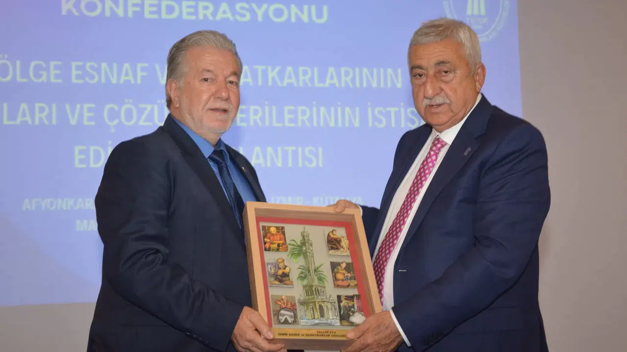 Toplantının ardından İESOB Başkanı Yalçın Ata günün anısına TESK Genel Başkanı Bendevi Palandöken'e Ahi Tablosu sunarken, Aliağa Şoförler ve Otomobilciler Odası Başkanı Salih Yiyitalp de Türk esnafının kaptanına farklı ve anlamlı bir hediye takdim etti.