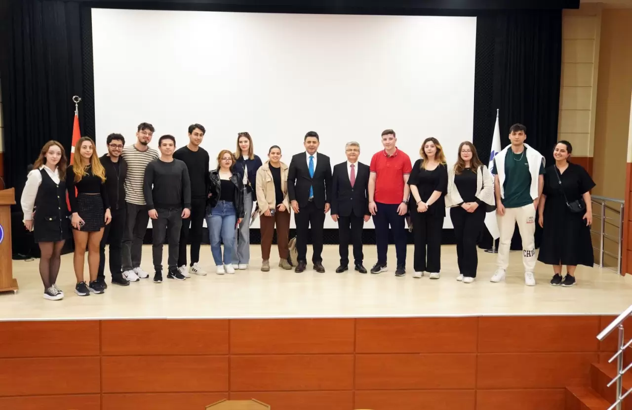 Ulaştırma ve Altyapı Bakanlığının çalışmalarını anlatan Osman Boyraz, “Bizim Bakanlığımız, teknoloji yoğun bir bakanlık. Amacımız, Bakanlığımızın vizyonunu bu tür etkinliklerle siz gençlerle paylaşmak. Ülkemiz, çok önemli bir stratejik konuma sahip. 4 saatlik bir sürede 67 ülkeye, 1,5 milyar insana ulaşan bir alanda bulunuyoruz. Böyle stratejik bir konuma ulaştırma alanında yatırımlar yapmazsanız, bu konumun hiçbir anlamı kalmaz. Biz de bu avantajı daha ileriye taşımak için devasa projeler yapıyoruz. Ulaştırma ve Altyapı Bakanlığı olarak bizler, insan, yük ve veri taşıyoruz. Vizyonumuz, ‘Türkiye Yüzyılı’nda insan ve çevre odaklı çalışmalar yapmak. Bugün, Türkiye’de yaklaşık 30 bin kilometre bölünmüş yol, 3 bin 800 kilometre otoyol var. İzmir-İstanbul Otoyolu, Kuzey Marmara Otoyolu, Çanakkale Köprüsü, Yavuz Sultan Selim Köprüsü, Avrasya Tüneli gibi projelerimiz var. Bununla birlikte 14 bin kilometre civarında demiryolu ağımız var. Hızlı trenlerimiz hizmet veriyor. Sahip olduğumuz 3 fabrikada hem normal hem de hızlı tren setleri yerli ve milli olarak üretiliyor. Yeni Sakarya isimli yerli ve milli trenimiz 160 kilometre hızla yolcu taşıyor. Şimdi 225 kilometre hıza ulaşan trenimizi yapmaya çalışıyoruz. Önemli havayolu projelerimiz var. İstanbul Havalimanı şu an dünyanın en önemli, en stratejik havalimanlarından birisi. Sabiha Gökçen Havalimanında da ikinci ve üçüncü etap tamamlandı. Çukurova Uluslararası Havalimanını yeni açtık. Mavi Vatan dediğimiz 62 bin kilometrelik denizyolu ağımız var. Önemli denizcilik projelerimiz var. TÜRKSAT 6A’yı 9 Temmuz’da fırlattık. Bu uydu, 3,5-5 milyarlık bir alana hitap ediyor. TÜRKSAT 6A uydusunun yüzde 85’i yerli ve milli üretimdir ve Türk mühendisleri tarafından üretilmiştir” diye konuştu.