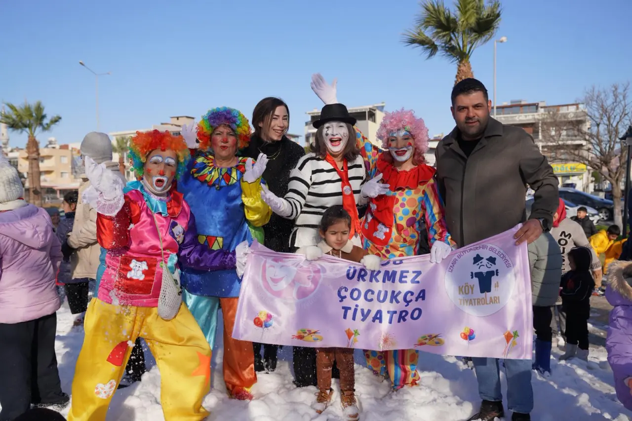 Ürkmez’e getirilen kar sürpriziyle büyük sevinç yaşayan minikler, oyunlar ve eğlenceli etkinliklerle tatilin keyfini çıkardı.