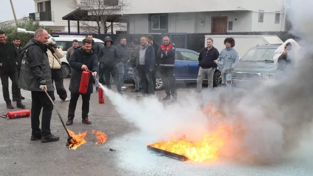 Eğitimde, yangın durumunda ilk yapılması gerekenin müdahale değil, yangını çevreye duyurmak olduğuna dikkat çekildi. Haktanır, “Yangın çıktığında öncelikle ortamda bulunan insanlara duyurulmalı. Alarm butonu varsa basılmalı, yoksa bağırarak yangının yeri belirtilmeli. Ardından 112 aranarak açık adres ve yangının kimliği bildirilmelidir. Yangının boyutuna göre eğitimli ve bilinçli bir şekilde müdahale edilebilir. Ancak eğer yangın kontrolden çıkmışsa müdahale etmeye çalışmayın, can güvenliğiniz her şeyden önemli” dedi. Haktanır, yangın çıkış nedenleri arasında tedbirsizlik, bilgisizlik, ihmal ve dikkatsizliğin büyük rol oynadığını belirtti. Sigara izmaritlerinin gelişigüzel atılmasının hâlâ yangınlara sebep olduğunu vurgulayan Haktanır, sabotaj, trafik kazaları ve doğa olaylarının da yangına yol açabileceğini dile getirdi. Son olarak, Maraş depreminin ardından İskenderun Limanı'nda konteyner yangını çıktığını ve söndürme çalışmalarının üç gün sürdüğünü hatırlattı. Eğitimin sonunda işletmeciler, Urla İtfaiye Grubu’nda yangın tüpü kullanımı ve yangına yaklaşma konularında uygulamalı tatbikat gerçekleştirdi.