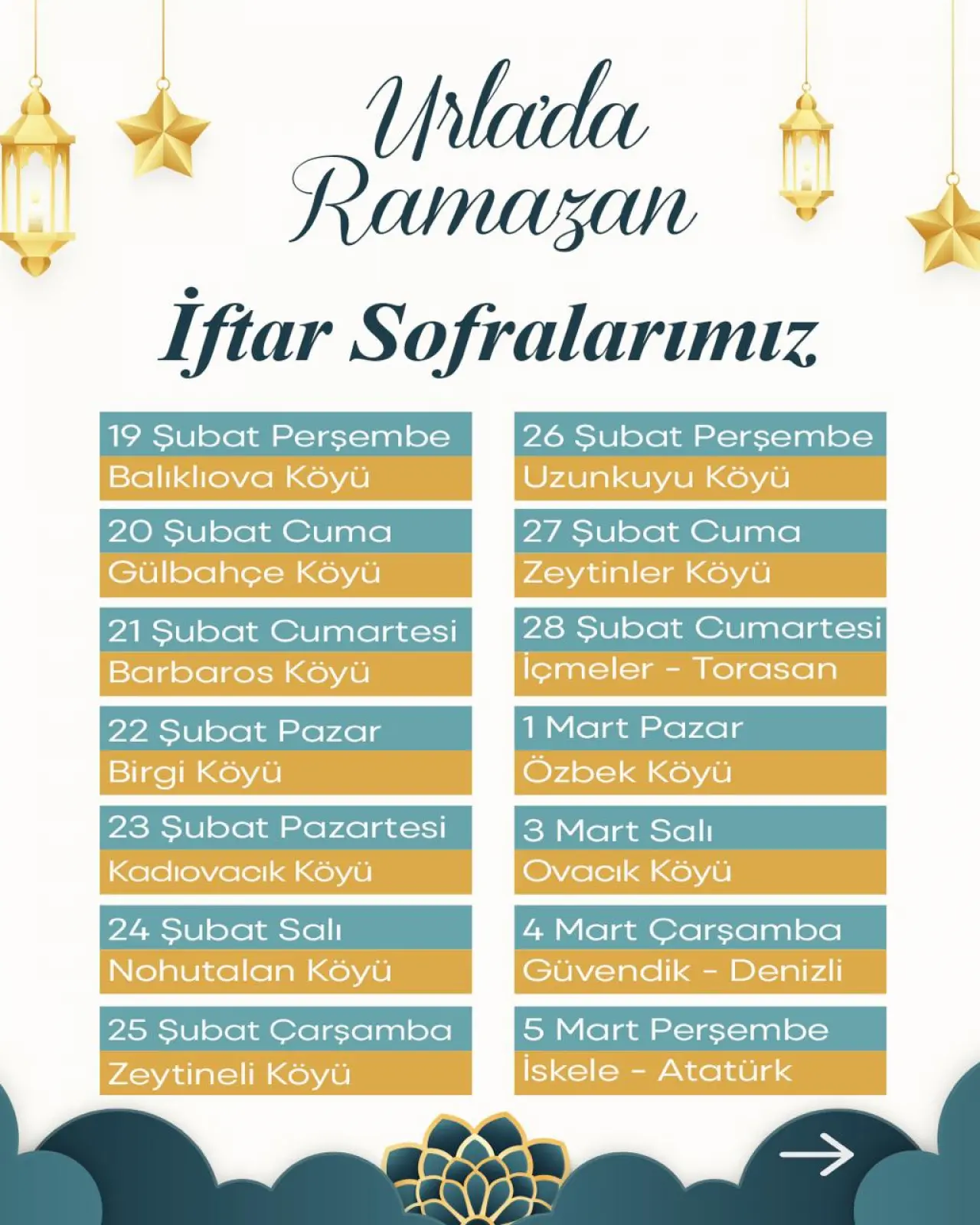 Ramazan ayının toplumsal dayanışmanın en güçlü şekilde hissedildiği özel bir zaman dilimi olduğunu vurgulayan Urla Belediye Başkanı Selçuk Balkan; “Ramazan ayı; paylaşmanın, dayanışmanın ve kardeşliğin en güzel şekilde yaşandığı bir aydır. Bizler de Urla Belediyesi olarak bu dayanışmayı ilçemizin dört bir yanında hemşehrilerimizle birlikte yaşamak istiyoruz. Kuracağımız iftar sofralarında gönüllerimizi birleştirecek, birlik ve beraberliğimizi daha da güçlendireceğiz. Tüm hemşehrilerimizi bu sofralarda buluşmaya davet ediyorum” dedi.