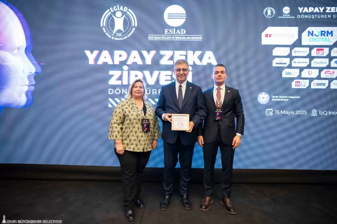 İzmir Büyükşehir Belediye Başkanı Dr. Cemil Tugay, Ege Genç İş İnsanları Derneği (EGİAD) ve Ege Sanayicileri ve İş İnsanları Derneği’nin (ESİAD) İzQ İnovsyon Merkezi’nde gerçekleştirdiği “Dönüştüren Güç” başlıklı Yapay Zekâ Zirvesi’ne katıldı. Yapay zekâ teknolojilerine ilişkin önemli değerlendirmelerde bulunan Başkan Tugay, Türkiye ve İzmir’in bugünkü haliyle yapay zekâ teknolojisine üretici olarak hakim olmadığını ancak gençlerden çok umutlu olduğunu ifade etti. Başkan Tugay, “Türkiye’de ve dünyada bir şeylerin iyiye gitmediğini ve değişmesi için bir şeyler yapması gerektiğini düşünen gençler, her türlü yenilikçi çalışmada olduğu gibi bu konuda da eminim çok dikkatliler, çok çalışkanlar ve bir şeylerin değişmesini sağlayabilirler” diye konuştu.