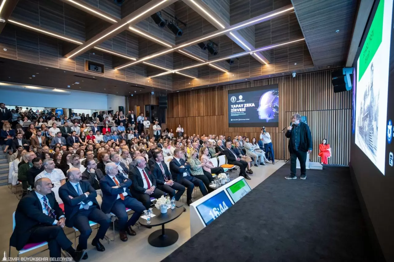 İzQ İnovasyon Merkezi’nde düzenlenen Yapay Zekâ Zirvesi’nde konuşan İzmir Büyükşehir Belediye Başkanı Dr. Cemil Tugay, yeni nesil belediyecilik anlayışı doğrultusunda İzmir’i yönetirken yapay zekâ teknolojisini ve uygulamalarını kullanmayı hedeflediklerini belirtti. Ulaşımda yapay zeka teknolojisinden yararlandıklarını aktaran Başkan Tugay, bu alanda önemli bir adım daha atarak belediye hizmetlerinde ve kentin sorunlarının teknoloji ile çözümünde yapay zekayı merkez alan “Yapay Zeka Stratejisi Belgesi” de hazırladıklarını açıkladı.